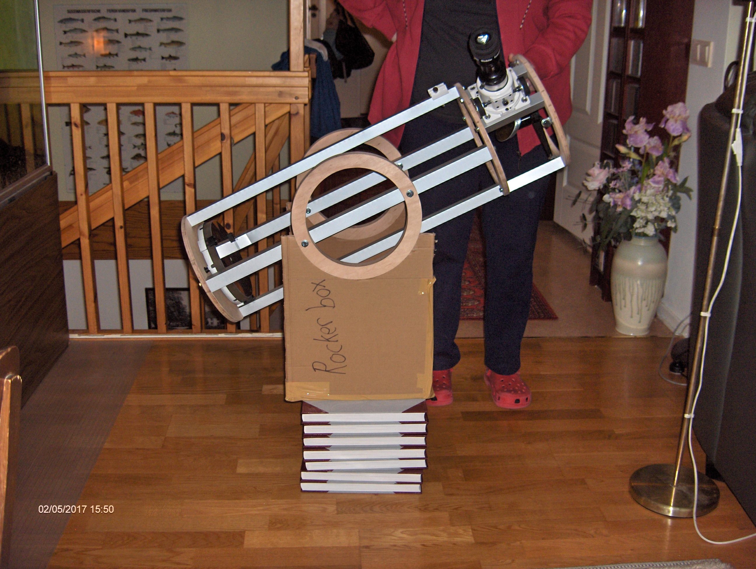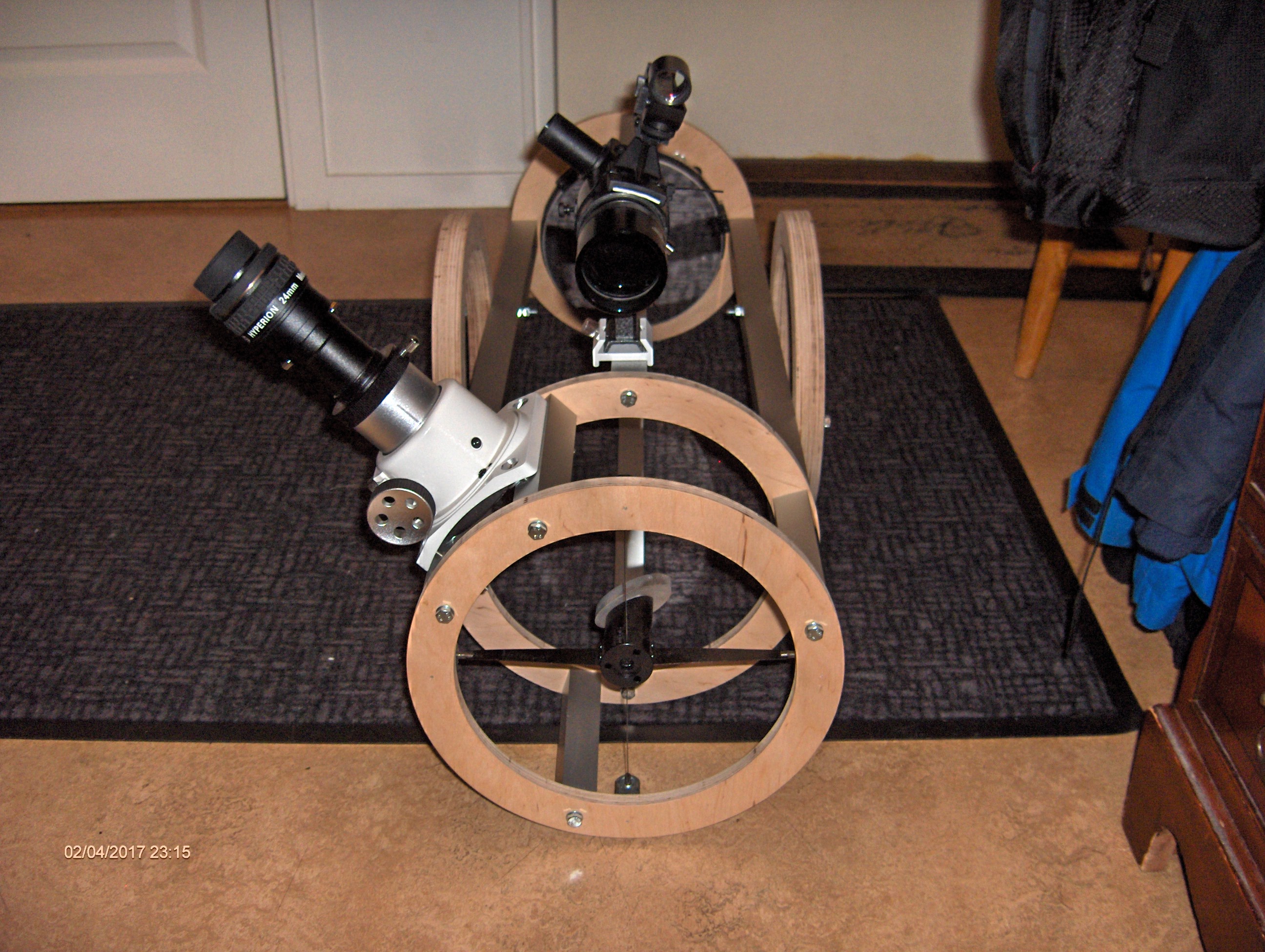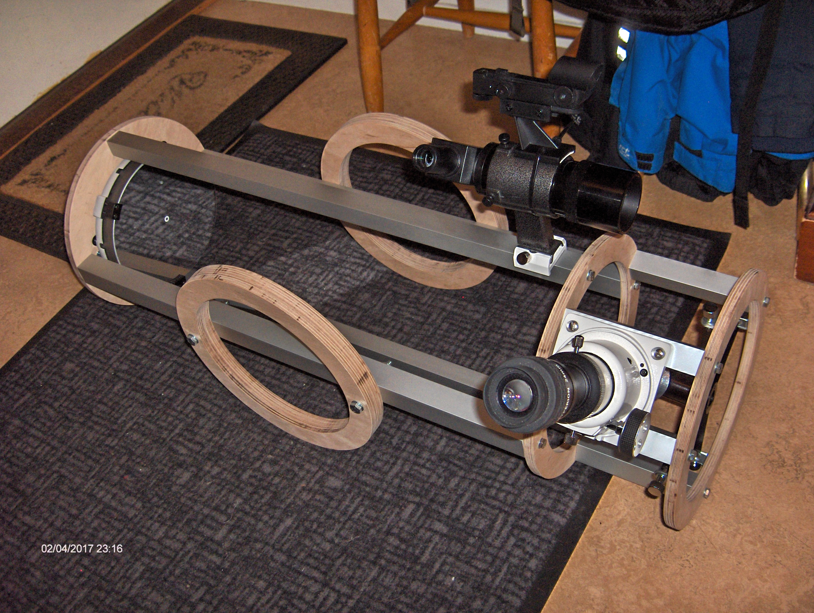 Det gjorde mig genast intresserad och bygget kändes ganska optimalt för mina syften: En 8" resedobson byggd av plywood och aluminiumstag. Isärtagbar och med en möjlighet att plocka ur primärspegeln och transportera den i handbagaget.