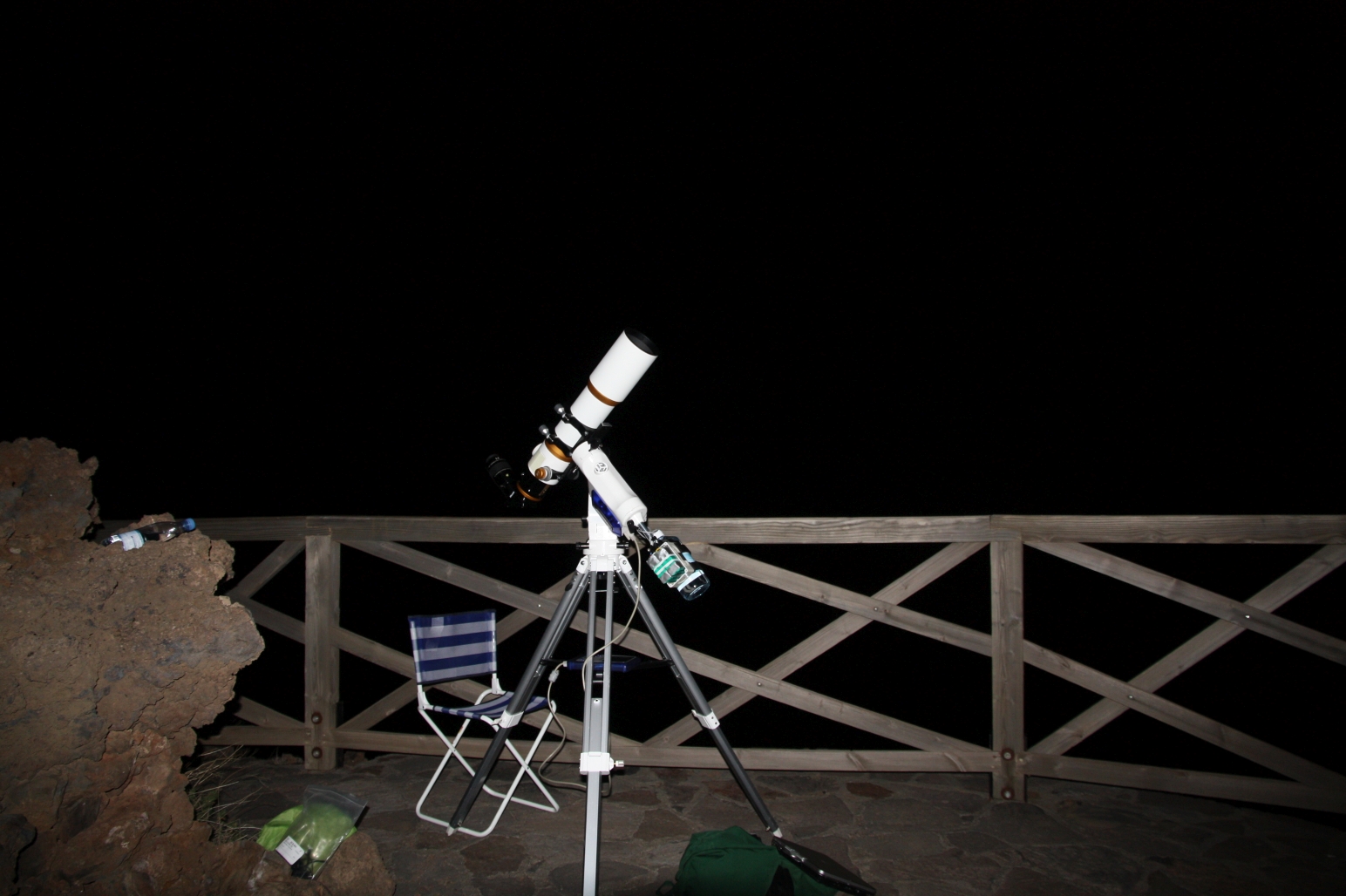 Åkte upp även natten därpå. Nu var det lite hål i molntäcket så man kunde skymta lite ljus från Tazacorte (tror jag det var) men kratersidan skymmer i princip allt ljus nere från dalen. Däremot var transparensen inte lika bra denna natt. Jag kunde inte se stjärnor hela vägen ner till horisonten och även när jag tittade på ljusa objekt som Flame nebula så var det inte riktigt lika hög kontrast. Hade jag obsat 2a natten först så hade jag naturligtvis tyckt den var fantastisk, så lätt att bli bortskämd.