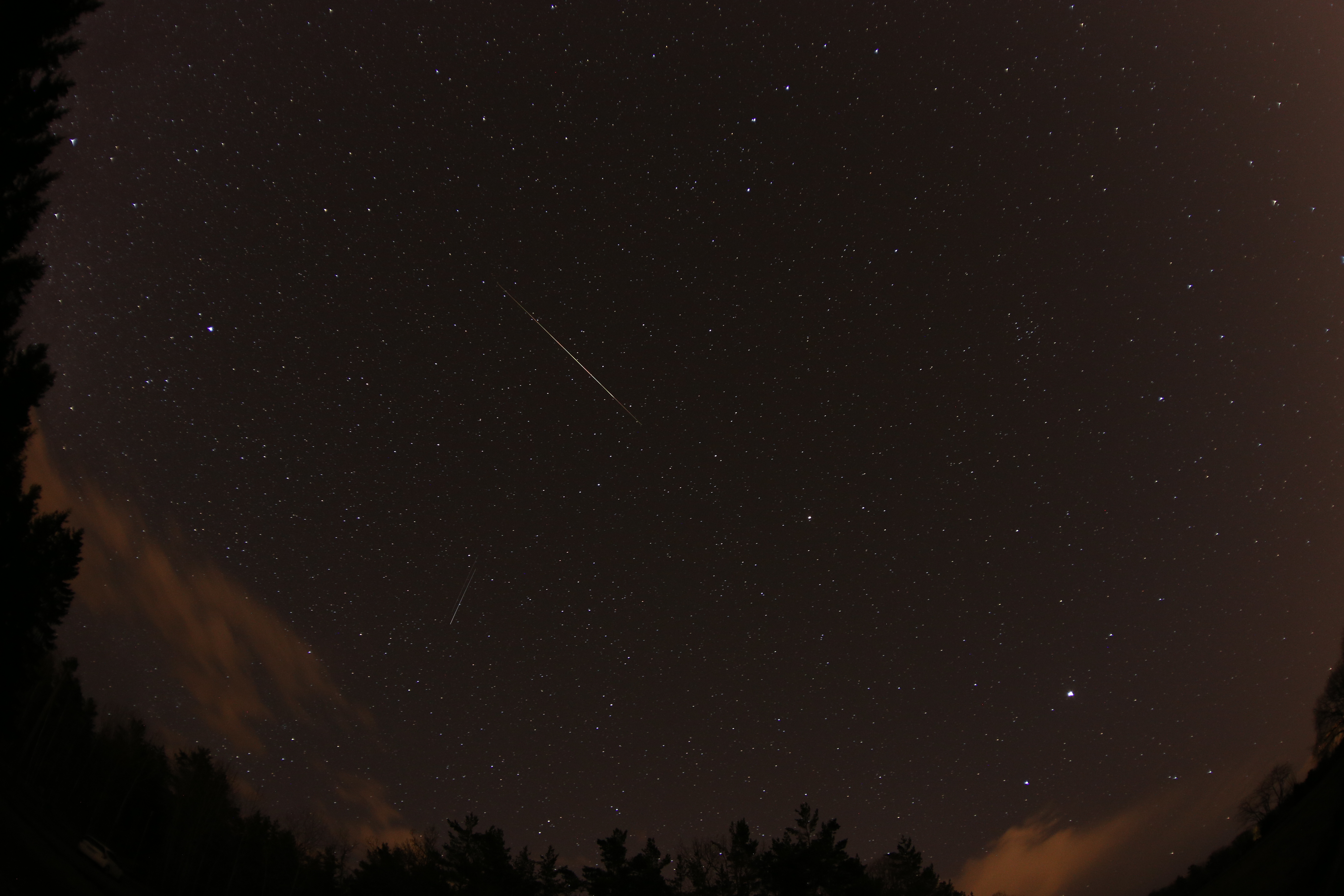 Satellit spåren är normalt mycket svagare och långsammare så de återkommer på flera efterföljande bilder. Några få satelliter var verkligt starka men ingen av dom med på bild vad jag kan se.