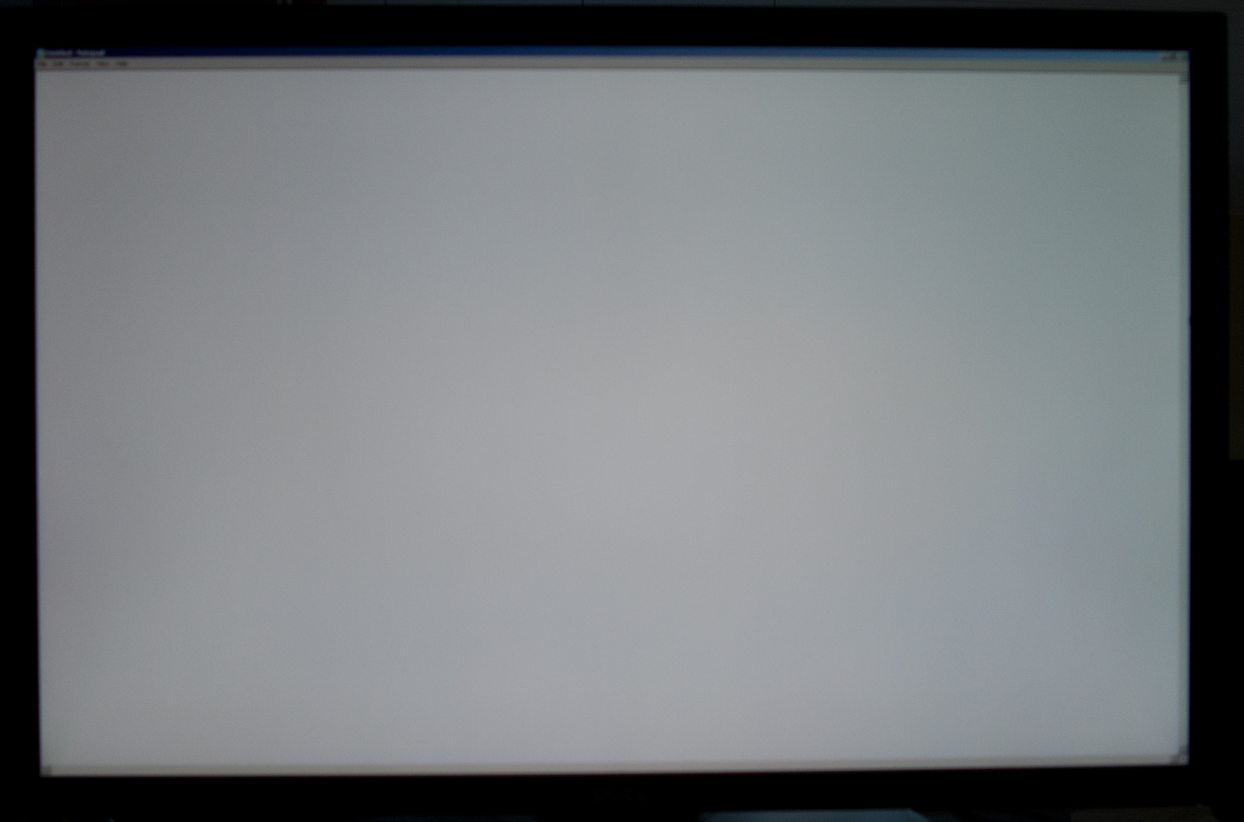 Om jag öppnar en browser, eller notepad, i fullformat så ser jag tydliga färgskiftningar i bakgrunden som idealiskt sett skulle varit vit. Den gamla skärmen var kanske inte perfekt i det avseendet, men med den fanns det inget som jag reagerade på. Här syns det rätt tydligt om man tex surfar på någon sida med vit/ljus bakgrund. Det är skiftningar i svagt rosa resp blått på olika delar av skärmen. Jag tog en bild på detta med en omoddad kamera : (Bilden är avsiktligt ofokuserad för att slippa moiremönster från pixelmatrisen). Jag ser blåstick i övre delen, speciellt uppe till höger, och rosastick nedtill. Inget som märks på "vanliga" eller astro-bilder så jag är nog inne på att bara acceptera och vänja mig. Kanske måste man upp i högre prisklasser för att få en perfekt skärm. Hur hade ni gjort ? Urvalet är begränsat när det gäller ev byte, för jag vill ha en skärm med förhållandet 16/10 och det finns inte så många att välja på.