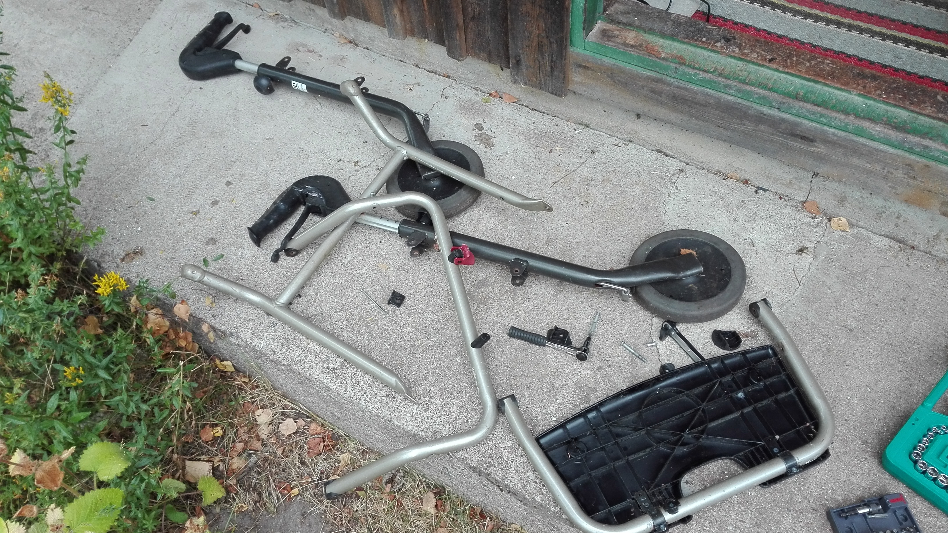 Har länge sneglat på svärmors rullator och de fina hjulen den har. I ett obevakat ögonblick snodde jag den.