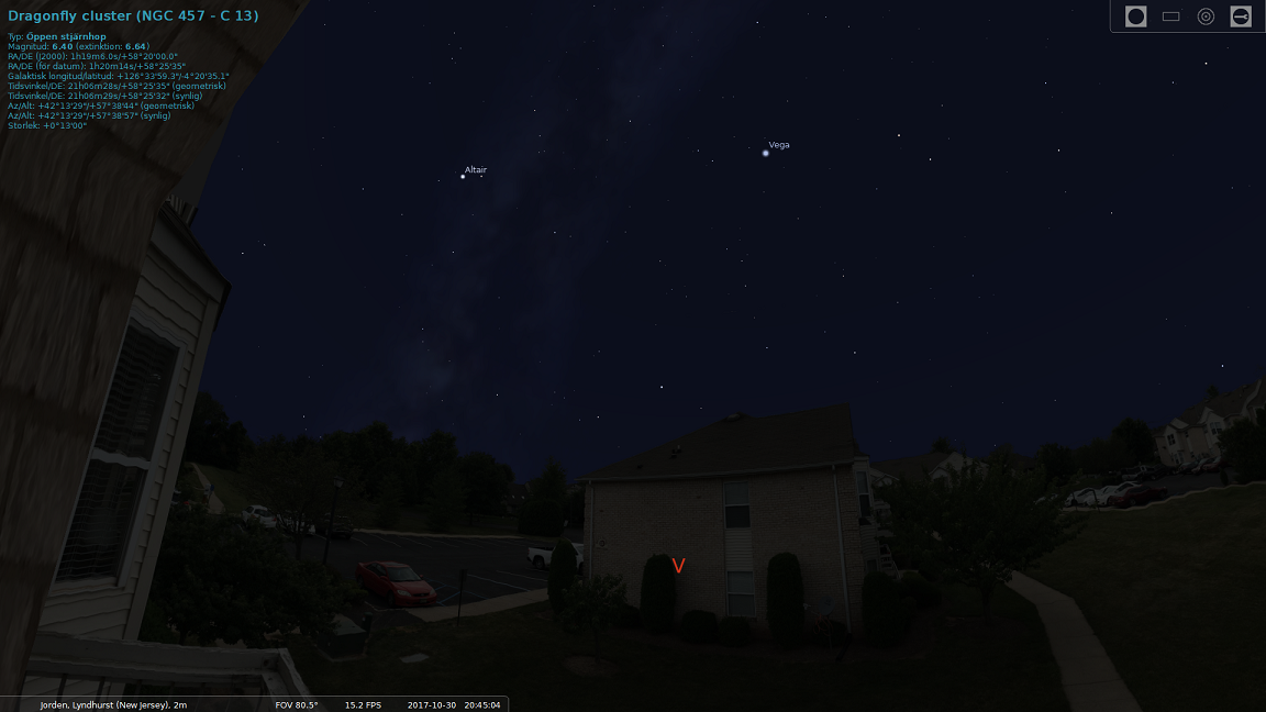 Det ville sig inte riktigt ta slut där utan jag gjorde ett snabbt uppstick till M103 klustret i Cassiopeia och blev förvånad över hur fint en av stjärnorna lyste rött i det öppna klustret. Avsluta för kvällen fick C13 Dragonfly klustret göra. Alltid lika tjusig, skarp och i min hjärna mycket snarlik en Sukhoi SU-30 ovanifrån.