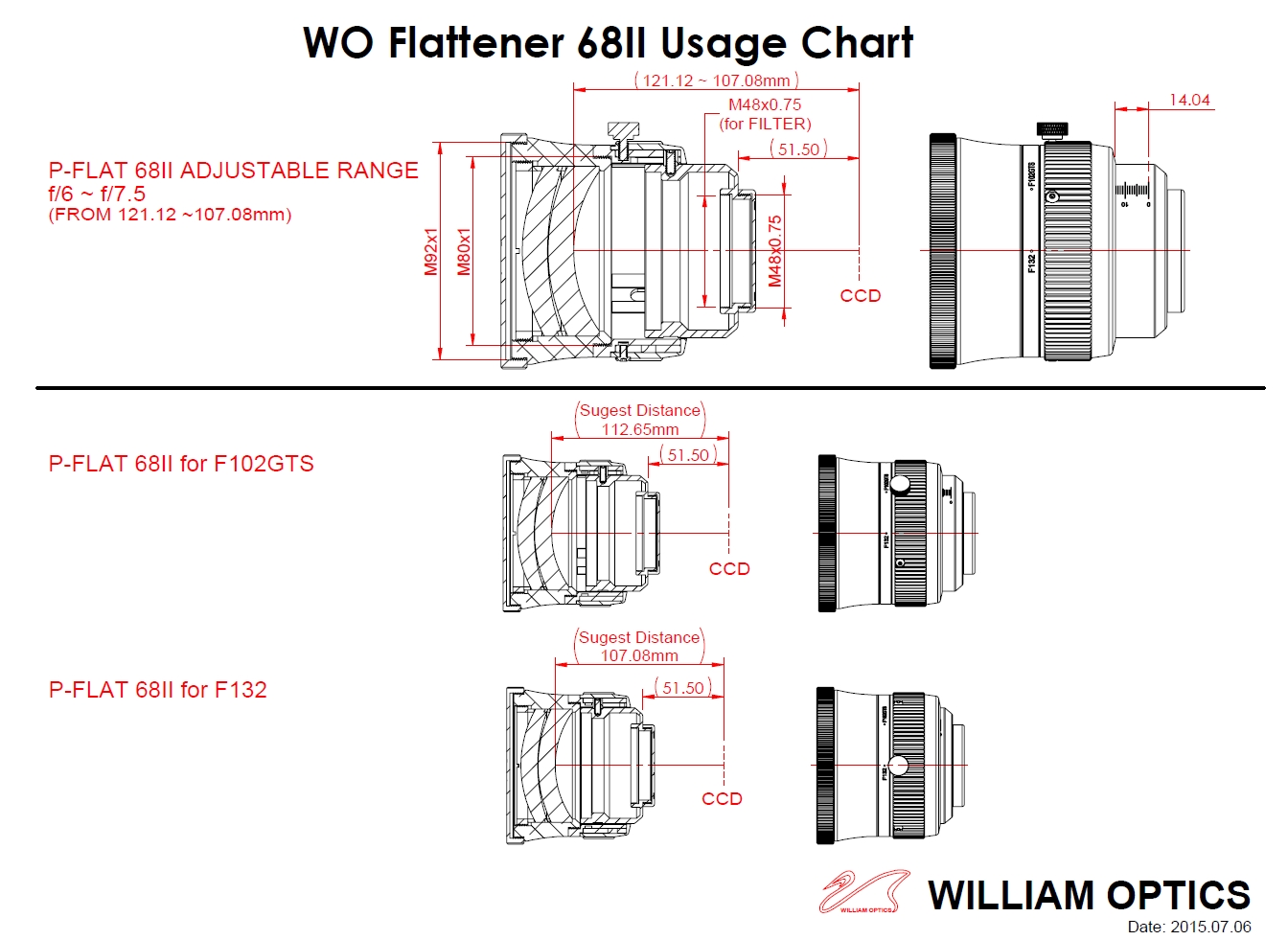 This high-quality flattener with 68mm of free aperture has been engineered and CNC machined for usage with William Optics' FLT-98, FLT-110 & FLT-132 Apo refractors. Designed by leading designer Thomas Back for William Optics' FLT line, it will yield amazing results! It's a must-have item for avid astroimagers.
