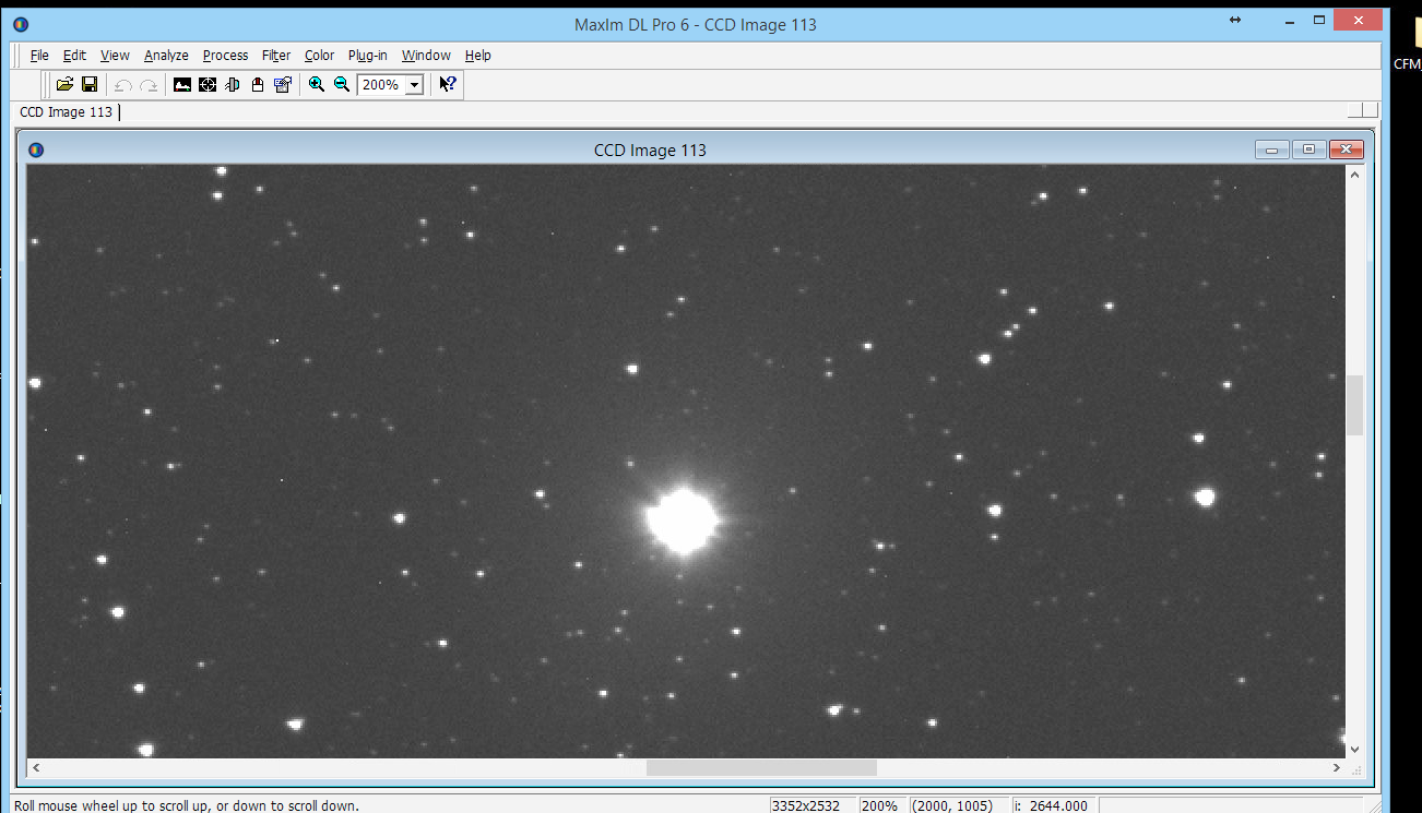 Men ändå så blir det galet, ser ju som nån sorts obstruktion nånstans. Man ser tydligt på den stora stjärnan hur ljuset sprids konstigt.