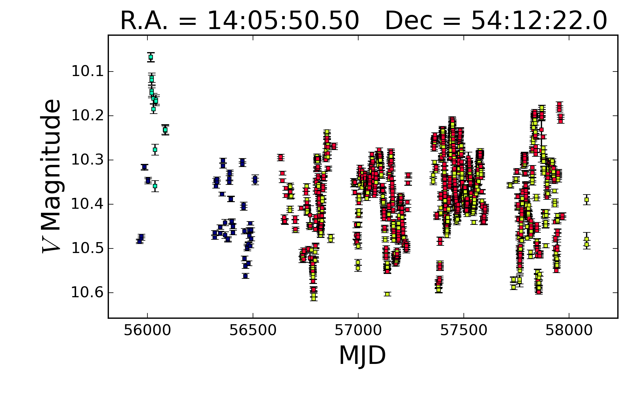 Kollade också på stjärnan som också har beteckningen TYC 3852-296-1. Jag hittade inte heller att den är en känd variabel, men den verkar faktiskt varierar mellan 10.1 och 10.6 enligt mätningar från ASAS-SN.