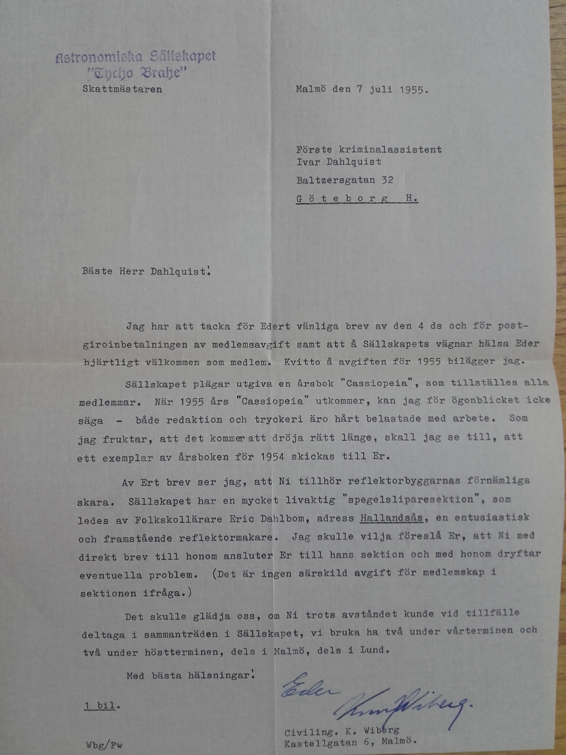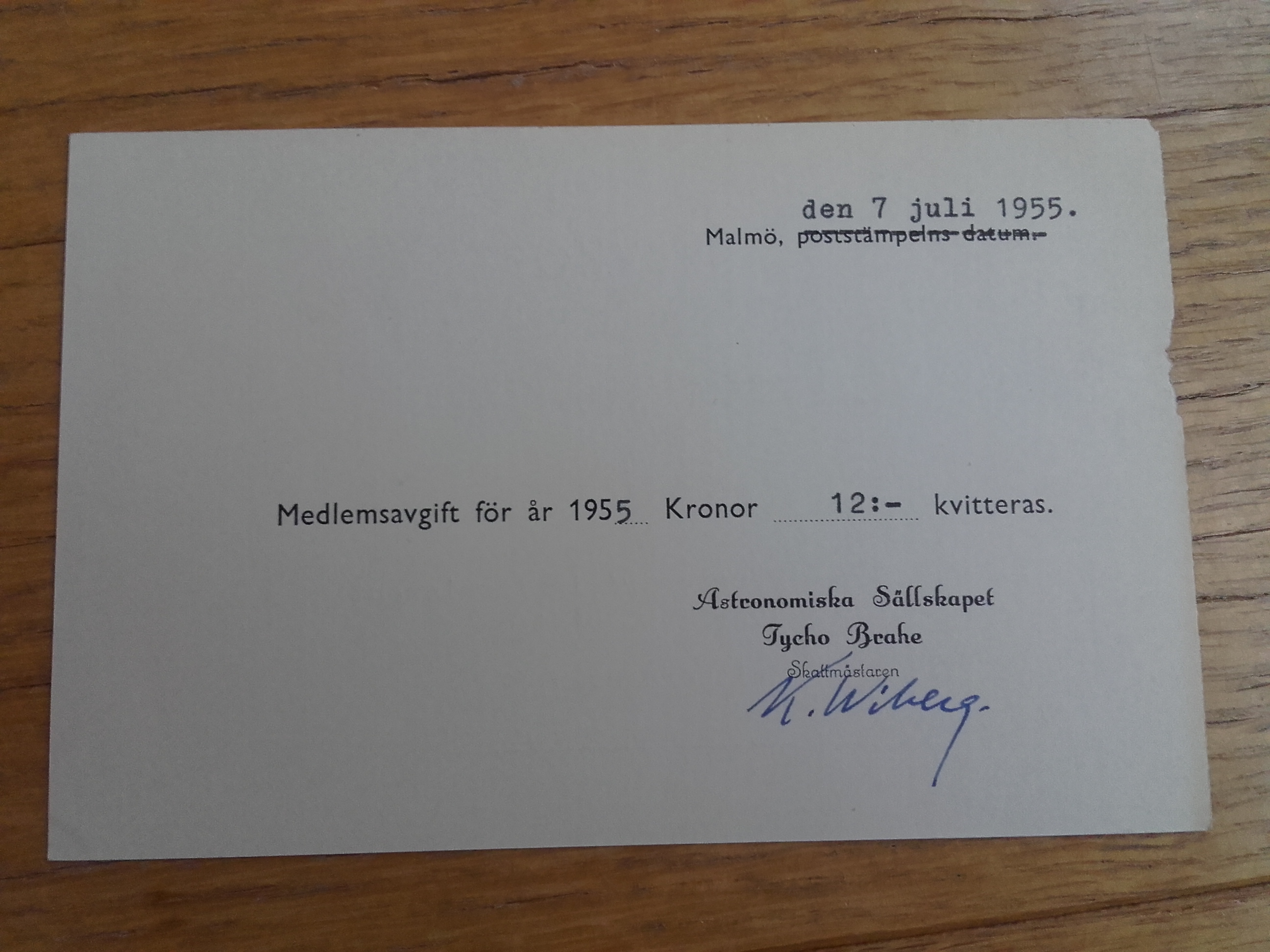 Maken kom hem från en loppis i helgen med flera årsböcker (el dyl) som heter Cassiopeia. Ur en årsbok (1954) trillade ett brev och ett medlemskort. Kanske kunde vara kul för fler att läsa det. Varför var så mycket trevligare förr?!