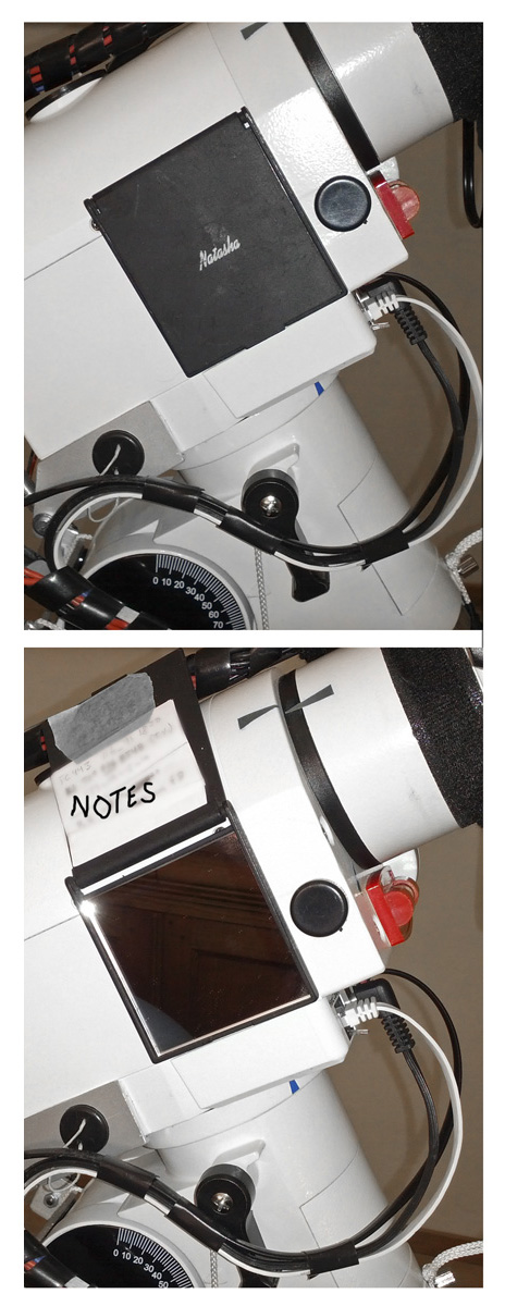 För att ställa in nord/syd har jag en pejlkompass som jag riktar mot den här spegeln: