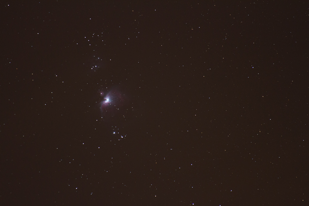 Första bilden är mitt första försök på nebulosan med min 7D och 280mm. Helt obearbetad 30s bild.