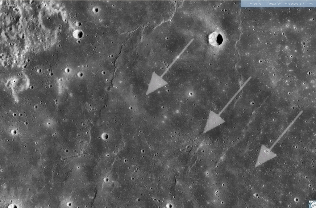 Jag har gjort en lite grundligare analys och det verkar bara vara en lätt sluttning som jag har uppmätt till ca 10 m nivåskillnad som ger ett så stort utslag i bilden. Och det verkar inte finnas någon fåra som man skulle kunna tro när man ser bilden som jag hänvisade till http://www.lpod.org/archive/archive/200 ... -02-22.htm" onclick="window.open(this.href);return false; så det är mera frågan om en "fault" än en "rile" för att ta upp Charles Woods analys.
