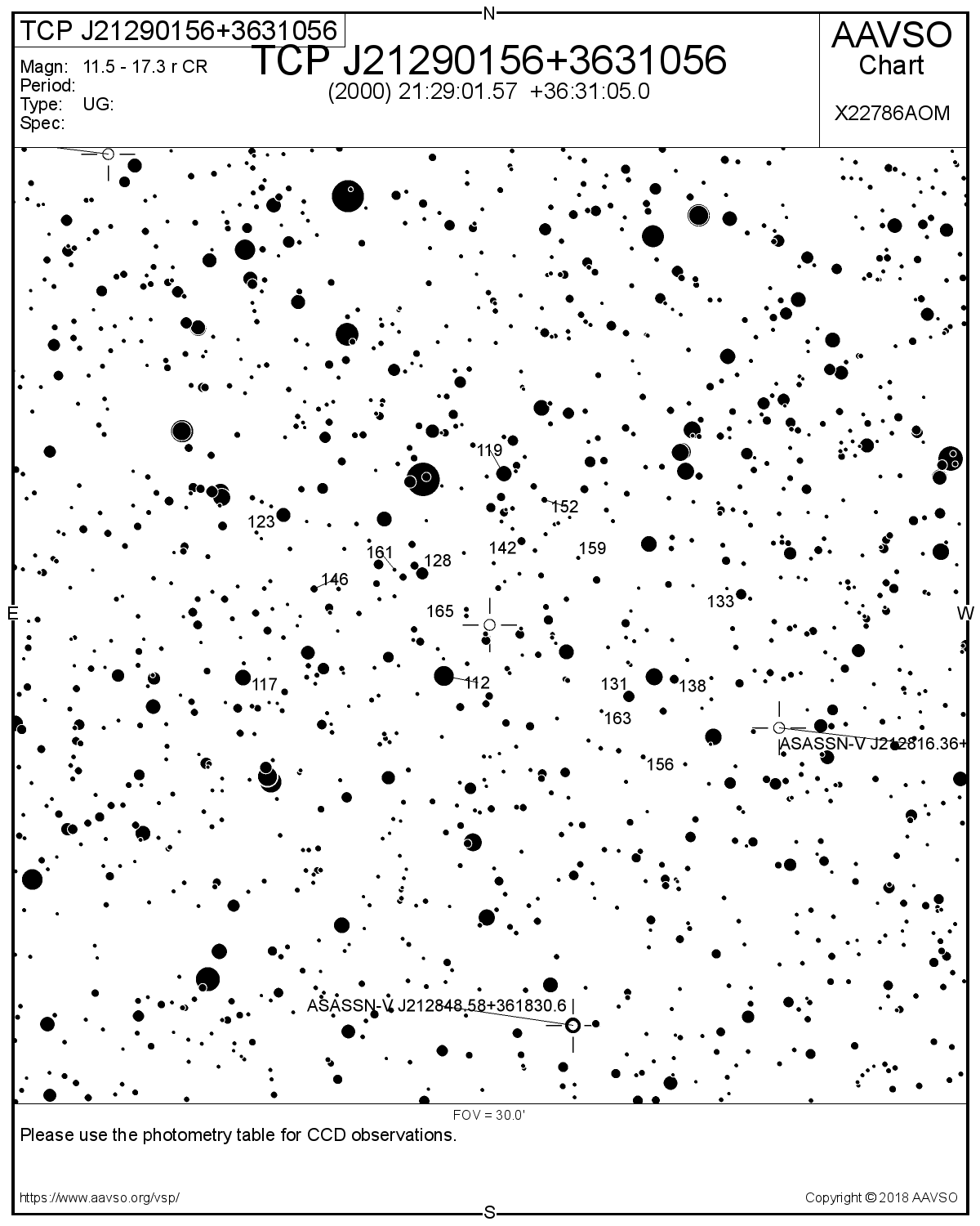 Ett eruptivt objekt av ofiltrerad magnitud 11.5 har upptäckts i Cygnus: