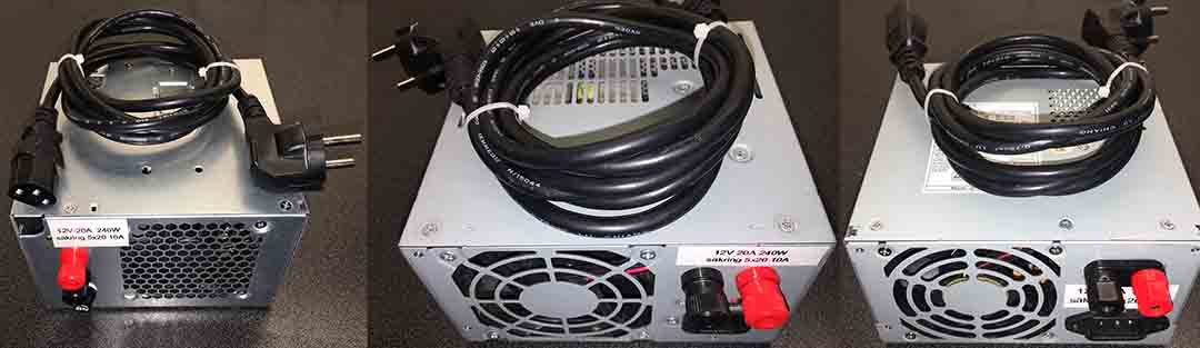 Som vanligt via batteri eller nätdel. Jag satte dit en extra kontakt som är låsbar så inte kontakten hoppar ur mitt i natten. Den gamla originalkontakten är kvar ifall man vill använda den. Och självklart kan jag skicka med en av de ombyggda dator-nätdelar jag själv använder.