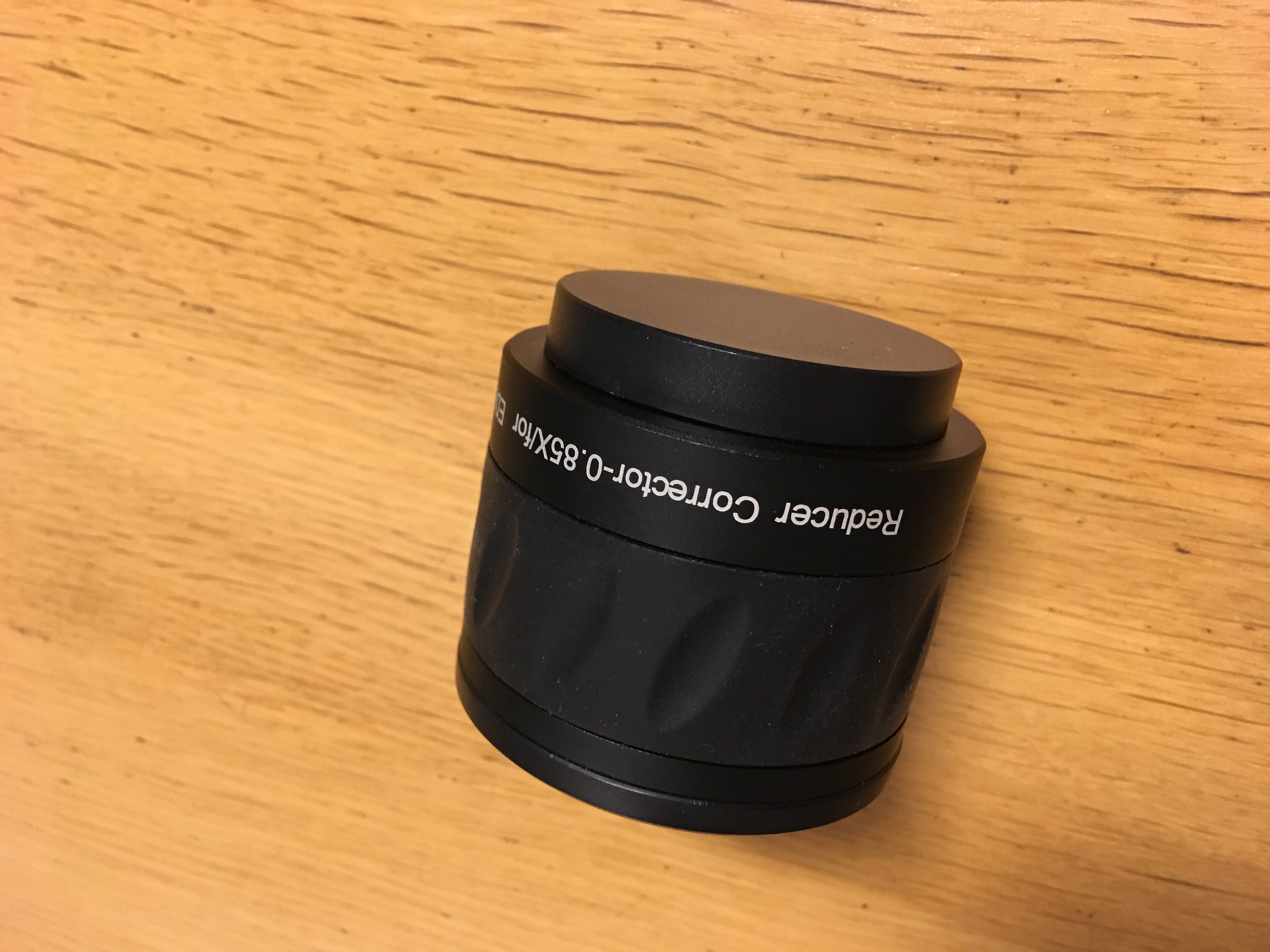 Jag har sålt min Sky Watcher 80ED DS-PRO men köparen ville inte ha flat-field korrigeraren med 0,85x fokalreduktion. Den är specifik för Sky Watcher 80ED DS-PRO så den är bara intressant för ägare av detta teleskop. Den höjer den astrofotografiska kvalitén högst betydligt med fina stjärnor i fokus över hela fältet, i varje fall upp till APS-C sensorer.