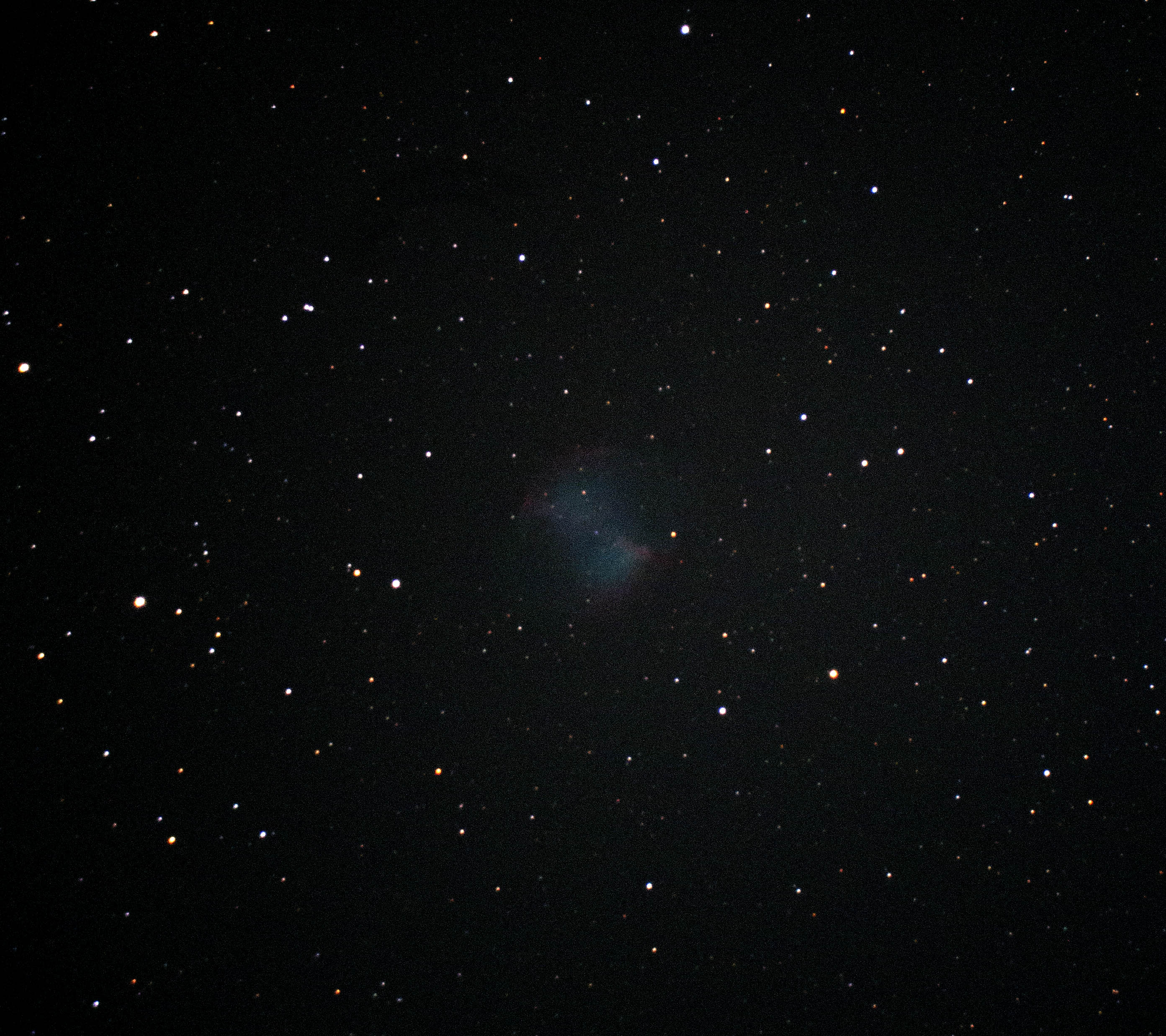 M27 Iso 1600 och 40 sek subbar vid f 6,3 Eos600D ( har inte fått igång ASI än inväntar IR filter ). Tyvärr försvann den ner i träden