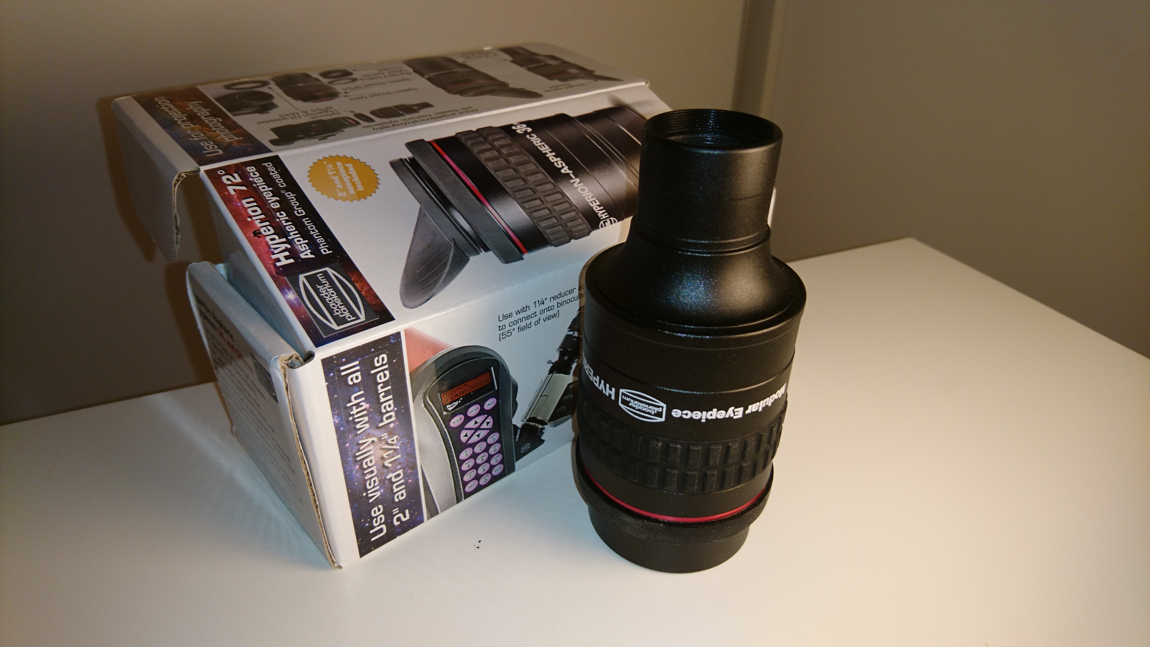 Detta var mitt första wide-field okular till min SCT/EdgeHD 8 tum. Av alla okular jag äger så är detta okularet som jag har använt mest. Jag har använt den främst som sökarokular och för att observera på deep-sky objekt, med och utan filter. I början så fotade jag via detta okular tillsammans med adaptern som medföljer. Men skruvar fast kameran på okularet, som i sin tur sitter i teleskopet via diagonalen.