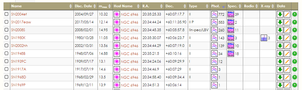 Eftersom supernovafabriken NGC 6946 nu är på tapeten, så kan det vara på plats att tipsa om Open Supernova Catalog, ett mycket bra ställe för alla som är intresserade av supernovor: