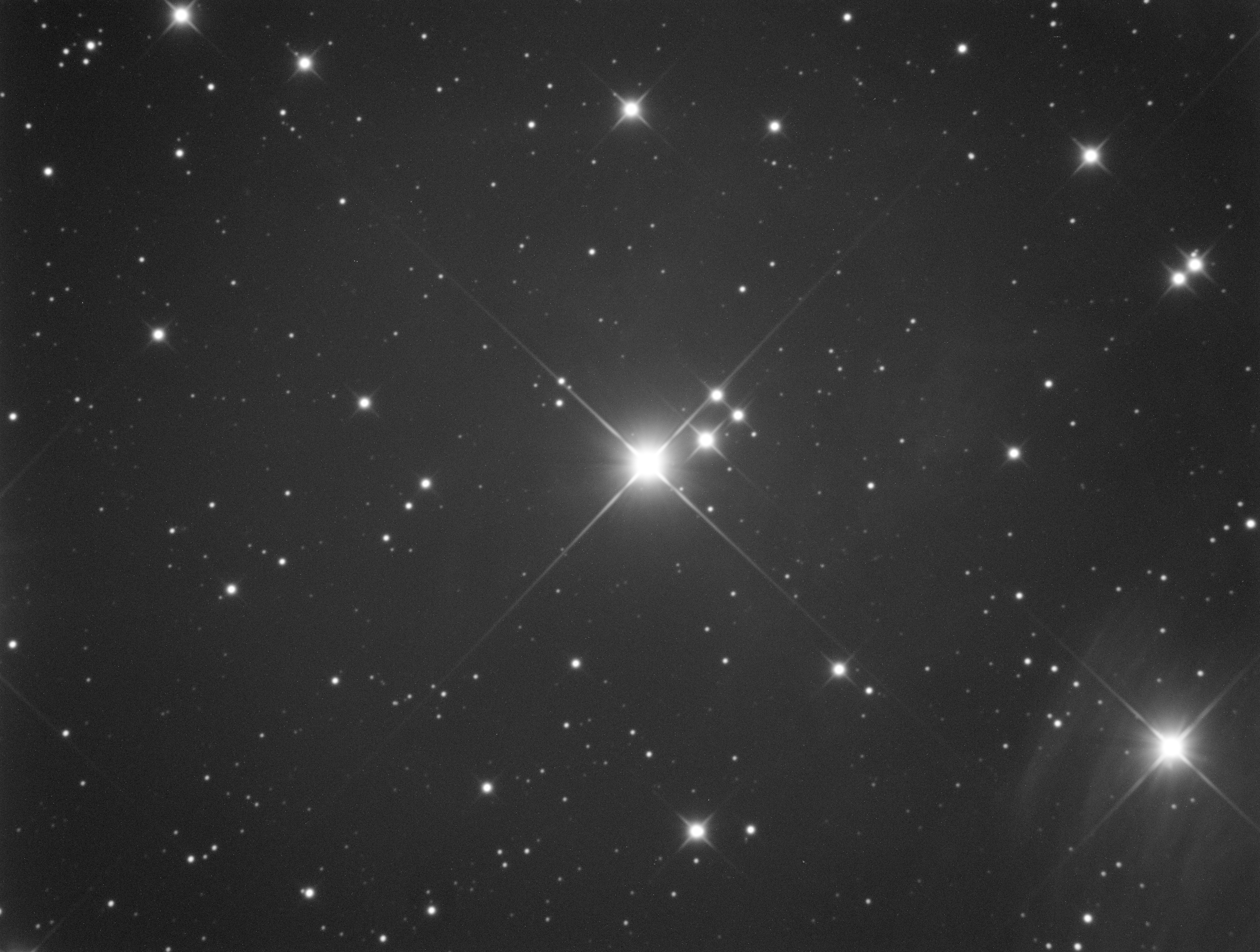 Bilden nedan är en helt okalibrerad 5min sub på M45. Som ni ser på star spikes så är det noll separation, och tajta hela vägen ut så perfekt fokus med andra ord. ( och hyfsad kollimering som jag gjorde med en hemgjord cheshire! )