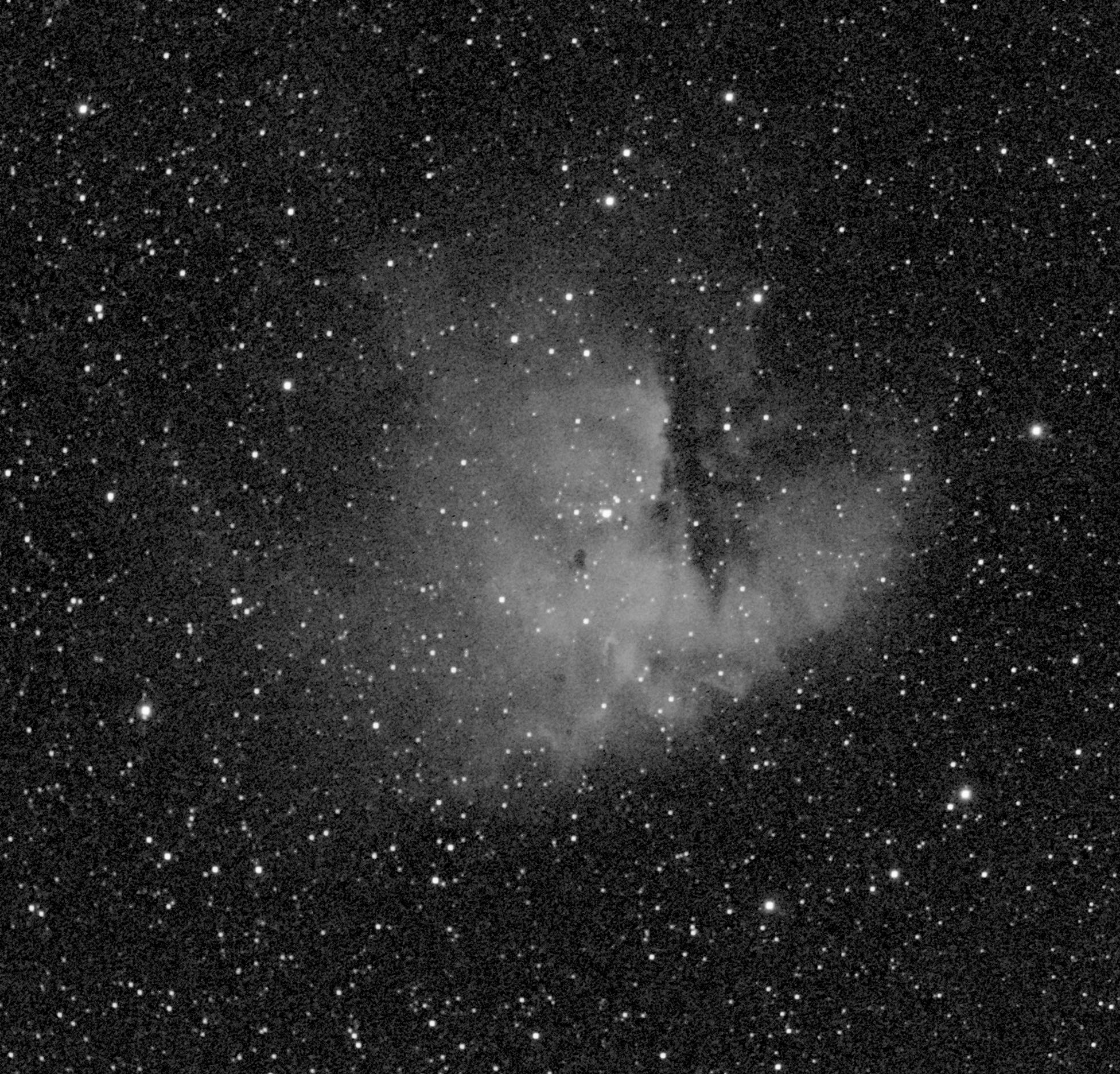 Här är min first light med mitt DN filter. Var verkligen inte bra förhållanden igår med starkt månljus och slöjmoln så är på så vis imponerad att det jag att foto ett sådant ljussvagt objekt över huvud taget. Utan filtret hade det troligtvis inte gått att få fram något ur de 30 minuter jag lyckats samla ihop.