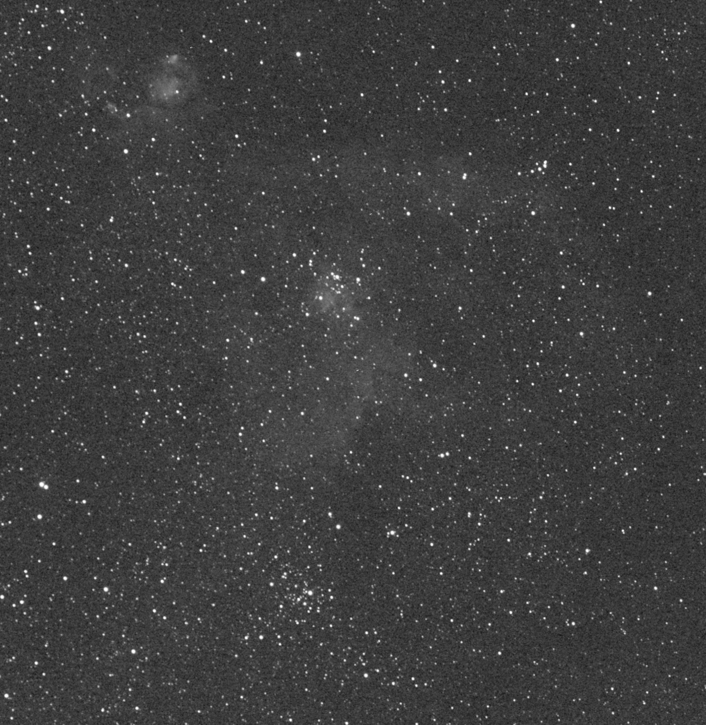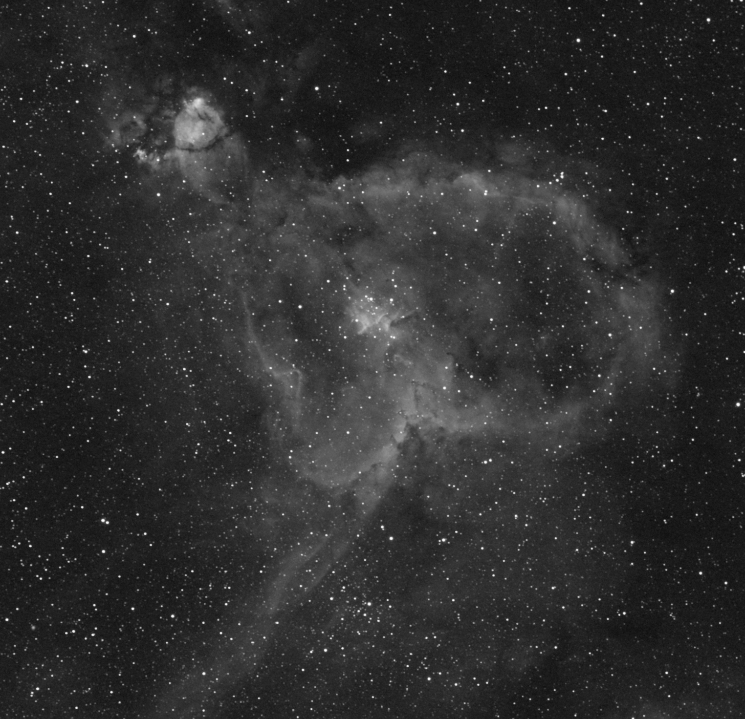 För jämförelse, samma frame med mitt astronomink 6 nm filter. Betydligt bättre fokus/skärpa. Förvisso tyå 4 gånger så lång exponering. Eftersom man bara fokuserar en kanal så blir det inga problem.