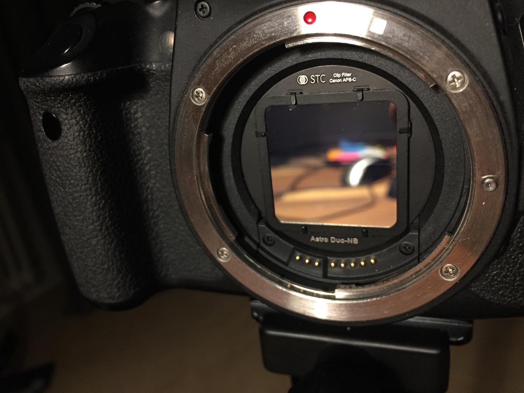 Troligtvis borde det hjälpa att blända ner, vilket blir mitt nästa test. Har en frame som är nerbländad till 3.2 vilket verkar blir lite bättre men en del moln passerade i just den bilden så svårt att dra några riktiga slutsatser. Har aldrig haft några problem att få bra focus med detta objektiv utan filter vid f2.0 . Tyvärr så tappar man ju hela vinningen med ett snabbt kameraobjektiv om man måste blända ner och kan nog bli svårt att ta smalband med dslr då. Hela poängen med filtret faller ju också eftersom jag lika väl hade kunnat använda individuella filter med med lägre f ratio och på så vis fånga samma data på kortare tid.
