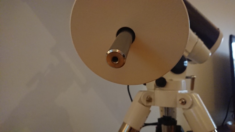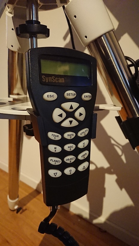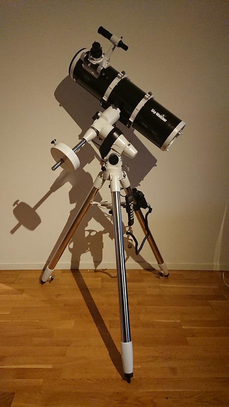 Komplett spegelteleskop med motorstyrd montering. Endast använt vid 5-10 tillfällen, och har förvarats nedpackat i leveransförpackning i normal rumstemperatur all övrig tid. Inköpt 2010 och är i mycket gott skick. Stoppskruven i änden på viktstången saknas dock.