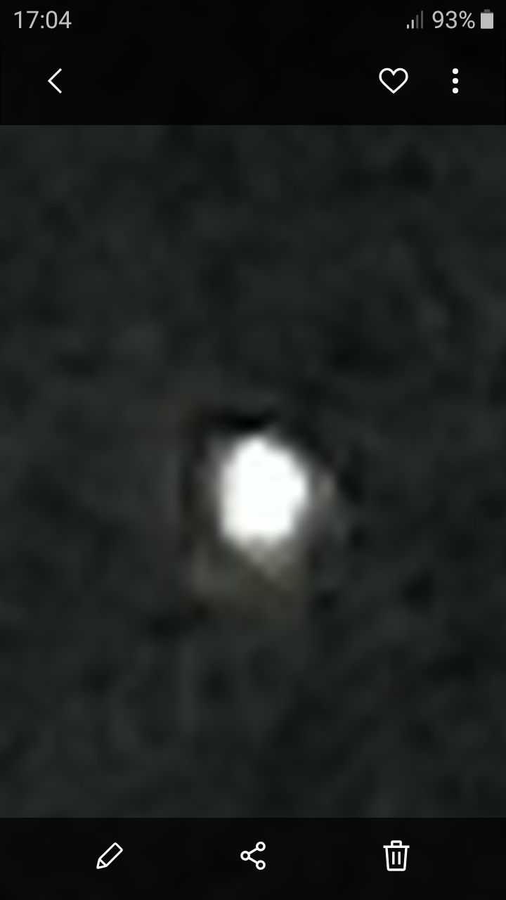 ni får tycka att det är omöjligt, men jag ser ju klart att jag fångat den på bild. må vara att det bara är ett fåtal pixlar, men det syns ju att jag fotat en sfär belyst från sidan.