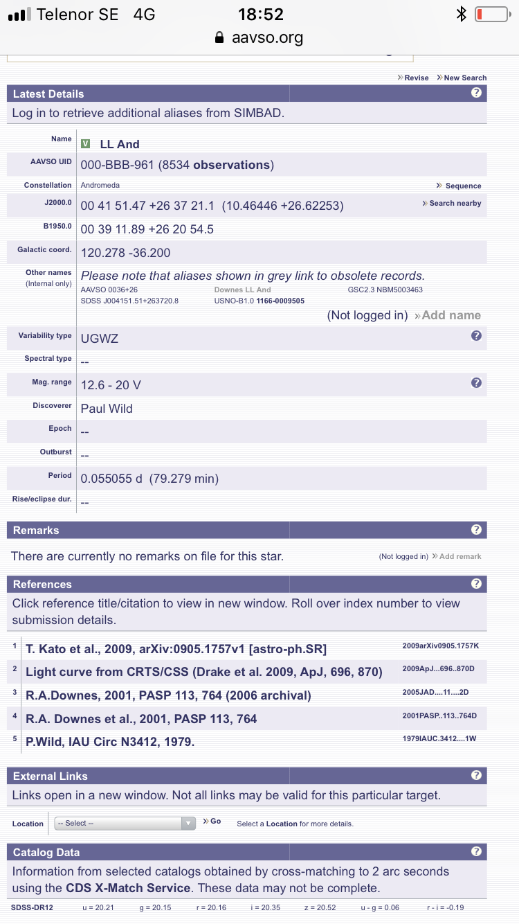 Tack för tipset. Mycket intressant stjärna och väl placerad i himlen för bekväm observation. Tyvärr ser det dystert ut med vädret i några dagar framöver.