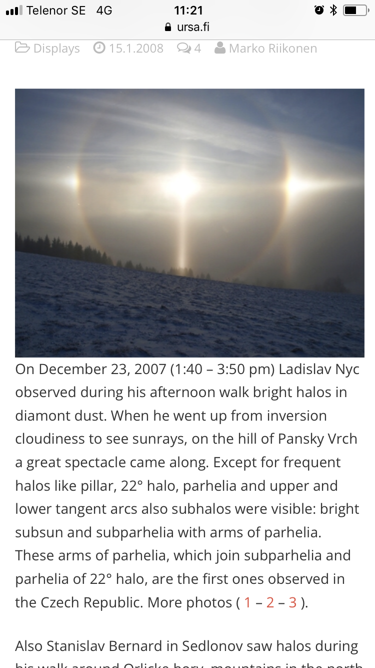Själva identifikationen av halokomponenten tycker jag redan är fastställd, det är en bisolpelare. Sällsynt men känd sedan tidigare.