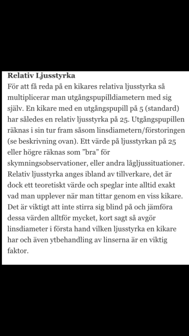 Re: Vad är ett ”ljusstarkt teleskop”?