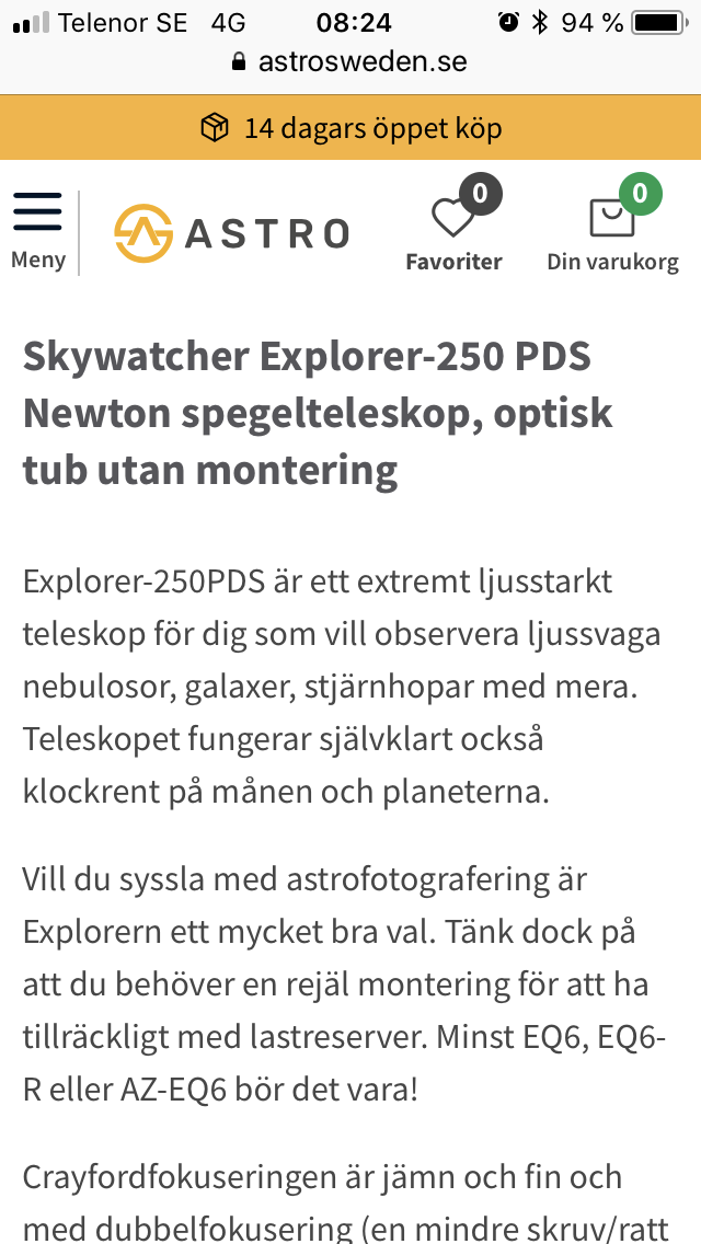 Jag håller med dig. Refraktor har låga f-talet, men CCD kamera med primärfokus fångar upp mycket mer ändå. Flera bilder och stackas ihop i datorn. Visuellt med okular behöver mycket bra f-talet som Newton och Dopson för att över huvudtaget se svaga deep sky objekt.Betelguse wrote:Är det inte en fråga om vad man gör?