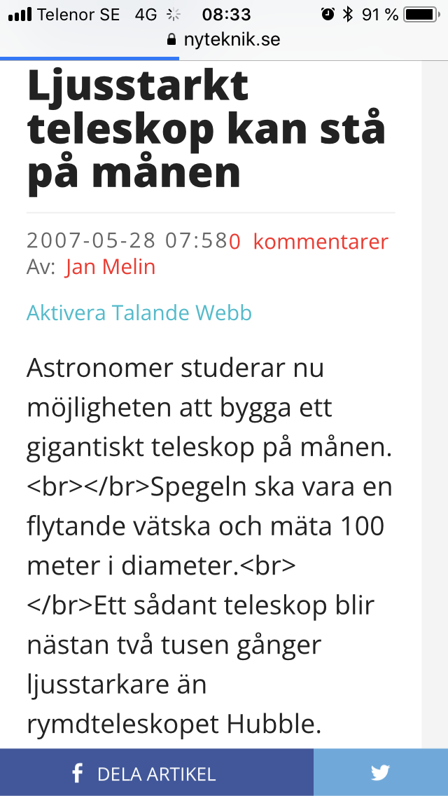Det är tydligt att ett ”ljusstarkt teleskop” i allmänhetens ögon betyder ett stort teleskop, ett som samlar in mycket ljus. Även hos Ny Teknik, se klipp nedan. Fokalförhållandet är oväsentligt.