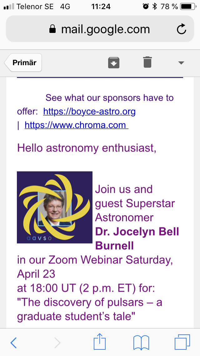 Det slog mig att det kanske bör finnas en tråd där aktuella webinarer för variabilister tas upp. Både sådana som redan varit (om de finns allmänt tillgängliga) och sådana som är på gång.