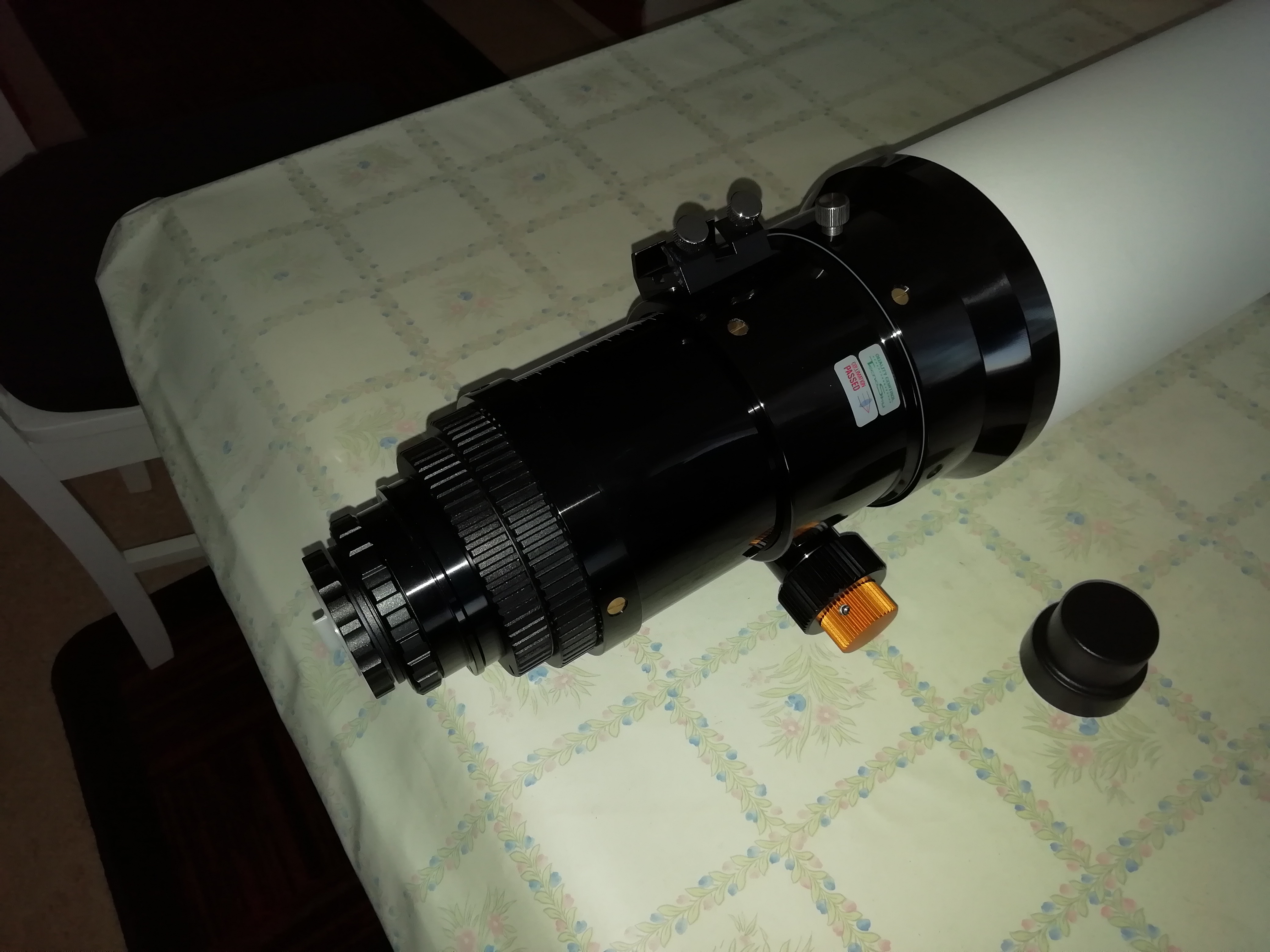 För fotografering krävs dock en rejäl montering, troligtvis över EQ6 förmåga. Bild på längden med utragen daggskåpa och fokuserare syns nedan.