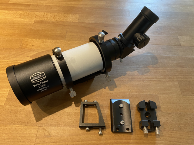 Baader 60mm Vario Sökare med Baader Quick Release 4 sökarhållare och sökarsko. En mycket mångsidig sökare som även kan användas som en liten vidvinkelrefraktor eller guideteleskop. Inbyggd dagghuv. Belyst hårkorsokular. Skickar även med ett hembyggt solfilter (Baader solfilm)