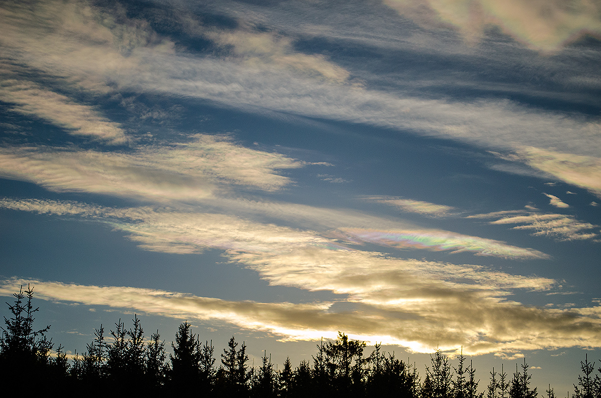 Jag tolkar det som pärlemormoln, min bild är behandlad några bländarsteg under vad jag upplevde himlen, och frost och jag tog vid samma tillfälle, vi har nog båda valt att göra den lite mörkare.