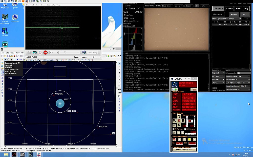 Alla 4 programmen är också ihopkopplade via ASCOM. Det medger driftalign, dithering och autoguidning på ett intelligent sätt.