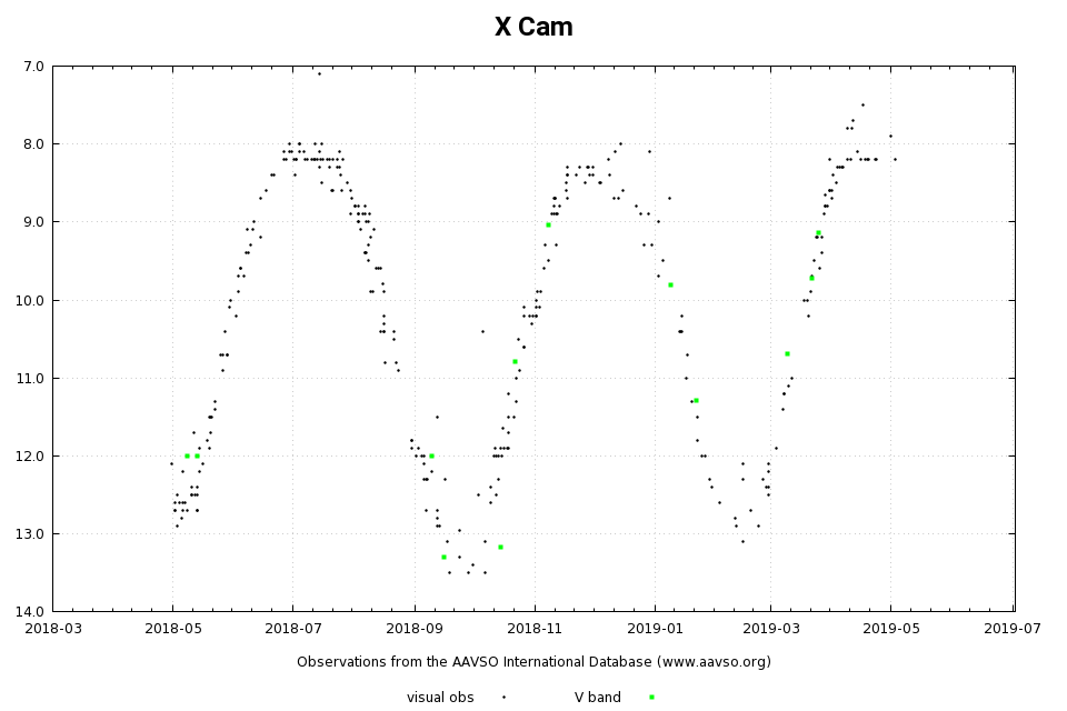 Det stämmer. Det finns flera intressanta långperiodiska variabler nära maximum just nu. Förutom de du nämner så kan man också pricka av U Vir, X Aur, X Cam och R Boo. Jag var speciellt intresserad av X Cam. Tyvärr går vi nu mot säsongens slut.