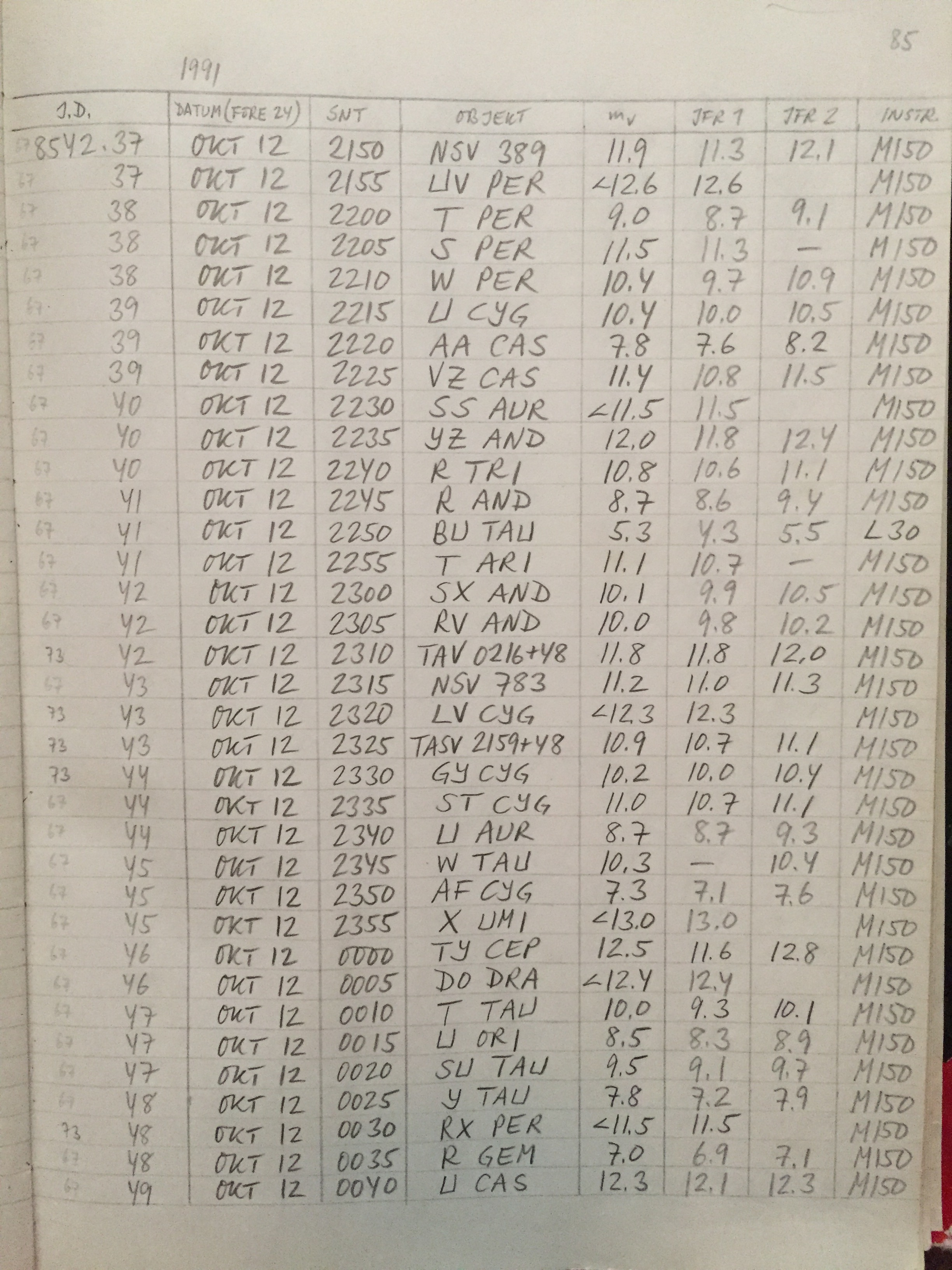 Tänkte passa på att lägga in några bilder som visar teleskopet jag använder, och hur obsbordet ser ut under ett obspass. Och så ett utdrag ur min obsjournal i oktober 1991, numera rapporterar jag direkt i SVO och utan att föra journal på det gamla sättet.