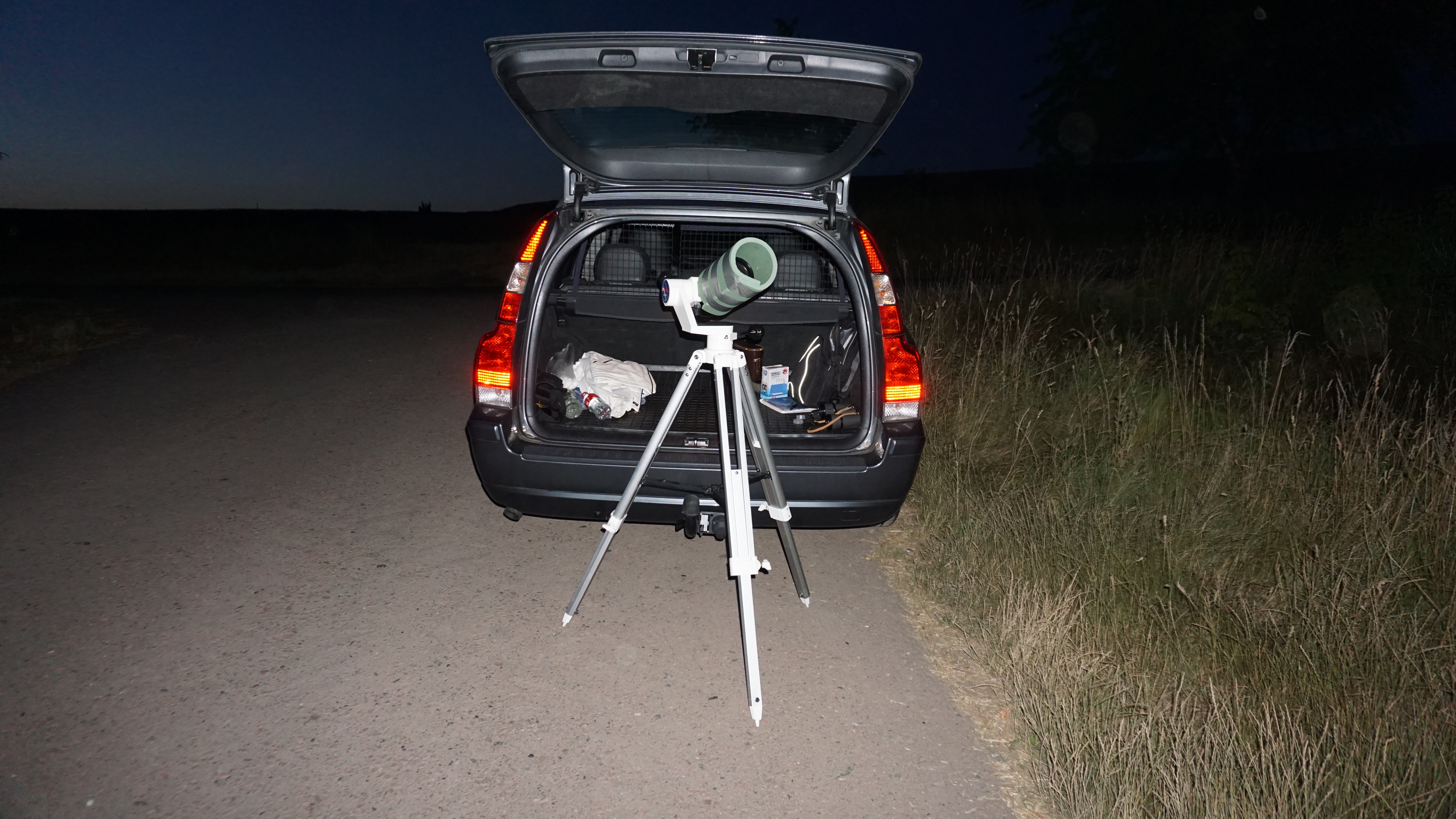 Jag ställde teleskopet så jag kunde sitta på kanten av bagaget, lite ovanligt men funkade bra. Alla tider UT.