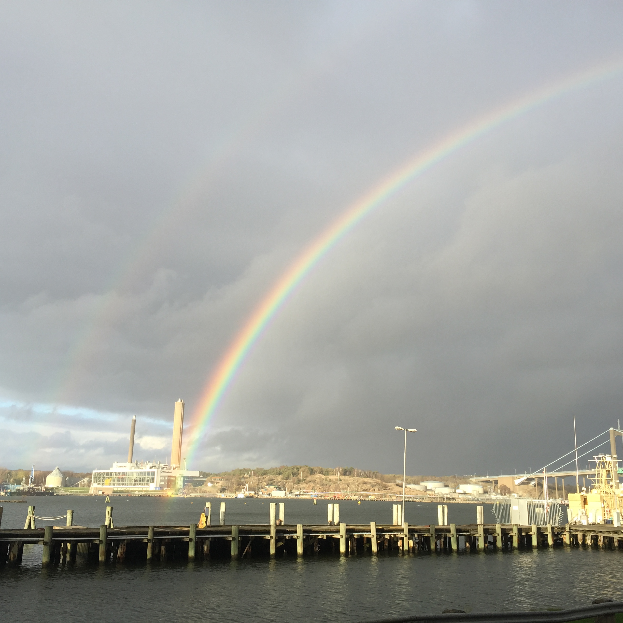 För en kort stund sedan kunde jag med mobilen ta en bild på denna dubbla regnbåge från min arbetsplats på Nya Varvet i Göteborg.