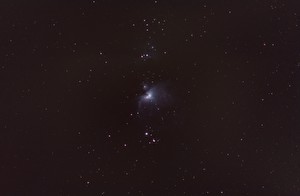 Kommentar: Testar ett nytt kamerakontroll program, APT. Passade då på att fota Orion nebulosan innan den försvann bakom grannhuset. Står endast 15 grader över horisonten så bakgrundsljuset är väldigt störande. Imponerad att det blir något överhuvudtaget.