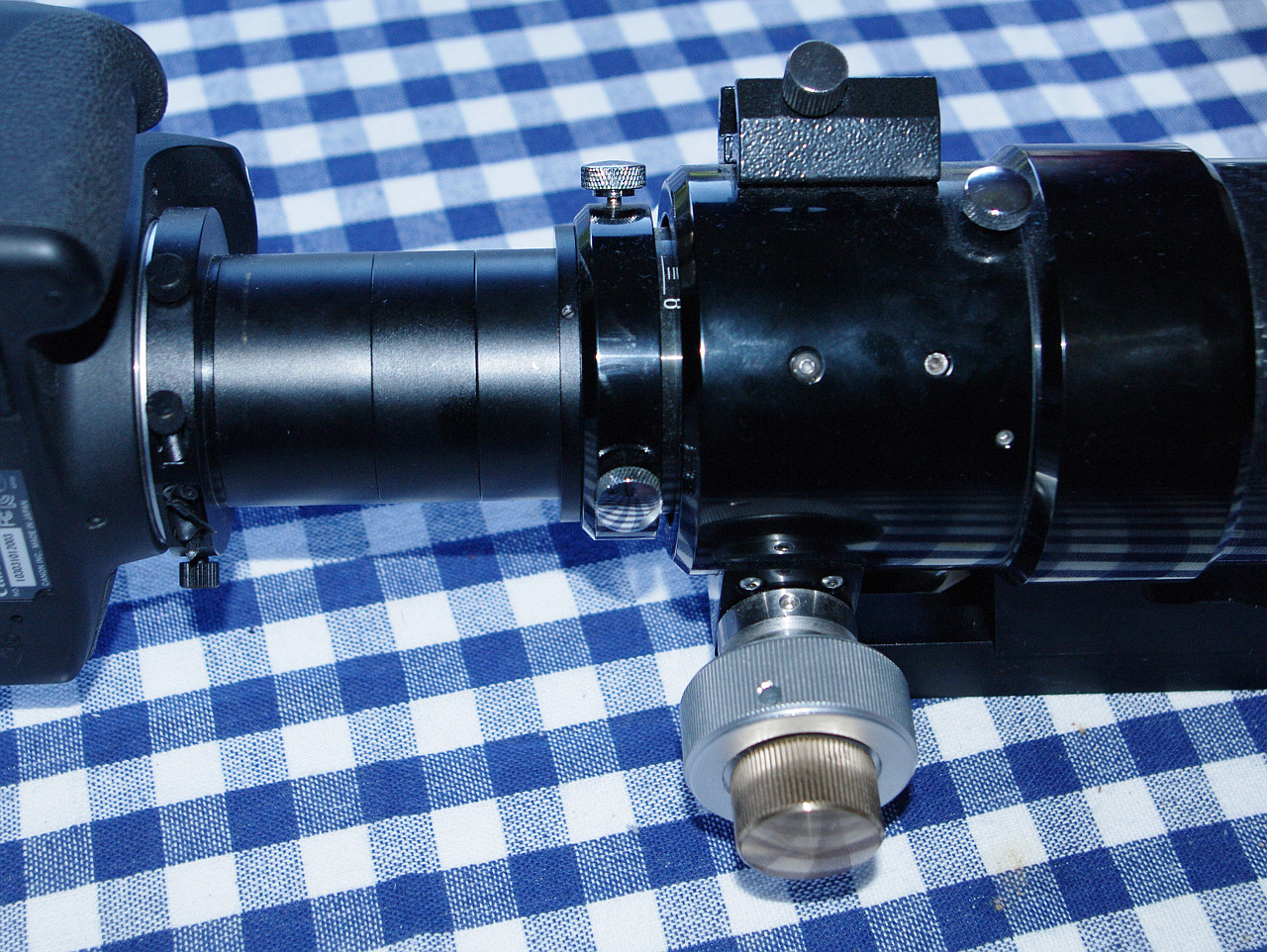 Canon har 44mm back focus i kameran som du får räkna av min adapter tar 10 mm och en "prime focus" adapter som bygger 56mm och sammanlagt blir det 119mm och jag har 120mm att komma upp till så det behövdes en 1mm bricka för att få det helt rätt