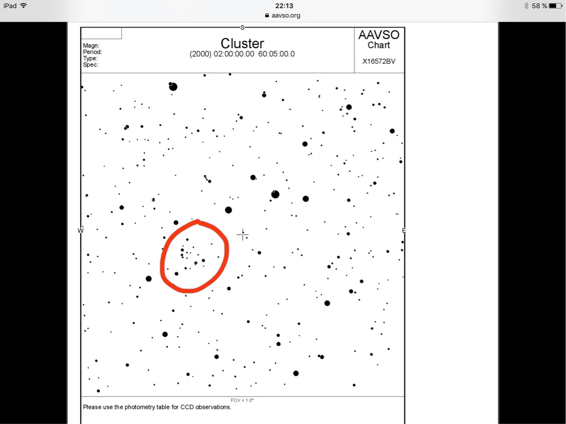 Ett exempel är denna bifogade bild som ligger i Cassiopeja . Mycket snarlik m103 fast ligger en bit nedan om ngc 663.