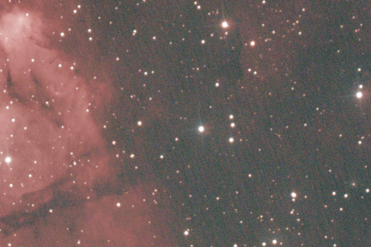 Teleskopets fokallängd är ännu mindre, 682mm med reducern. Tidigare var detta inget problem, men allteftersom problem löst sig och bättre teleskop med ökad skärpa verkar det vara på gränsen nu att märkas. Pixelskalan är bara 2"/pixel, men tänkte ju öka upplösningen med drizzling eller liknande och då måste det vara bra i grunden. Jag kan öka väntetiden ännu mer för att ge systemet mer tid att stabilisera sig, men försöker få detta med dithering och stabilisering bli bra först, kanske till och med är så att de tre lösa skruvarna som nu är hårt åtdragna löste detta problem. Min montering är inte heller modifierad på minsta sätt och lär inte göra det heller utan byter till något bättre i framtiden.