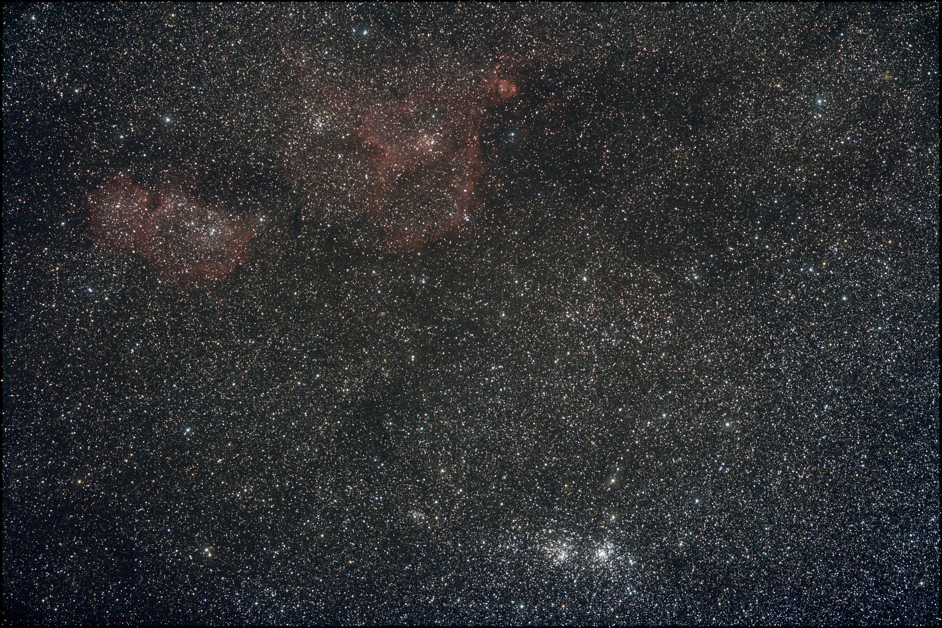 M31 är 30x40 sek (reflex från grannens garagebelysning letade sig in nere i vänstra hörnet), M45 är 13*40 sek o Caldwell 14 med heart and soul nebula är 30x1 min.