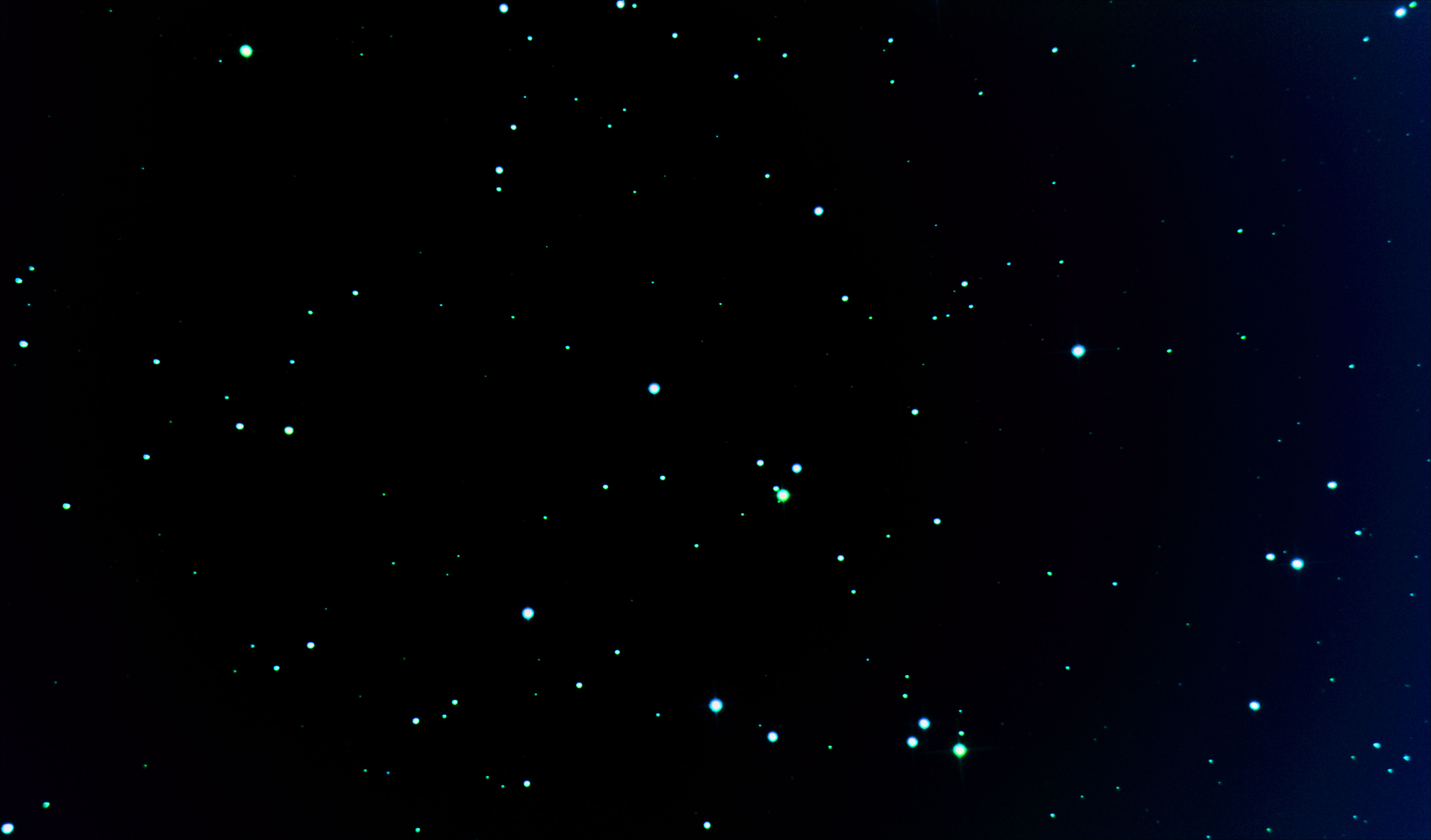 På min skärm ser bilden väldigt grön eller kanske blågrön ut. Verkar som om den röda kanalen blivit undertryckt, har inget med att kameran är omodifierad att göra. Stjärnorna är också klippta, möjligen delvis redan i raw bilderna.