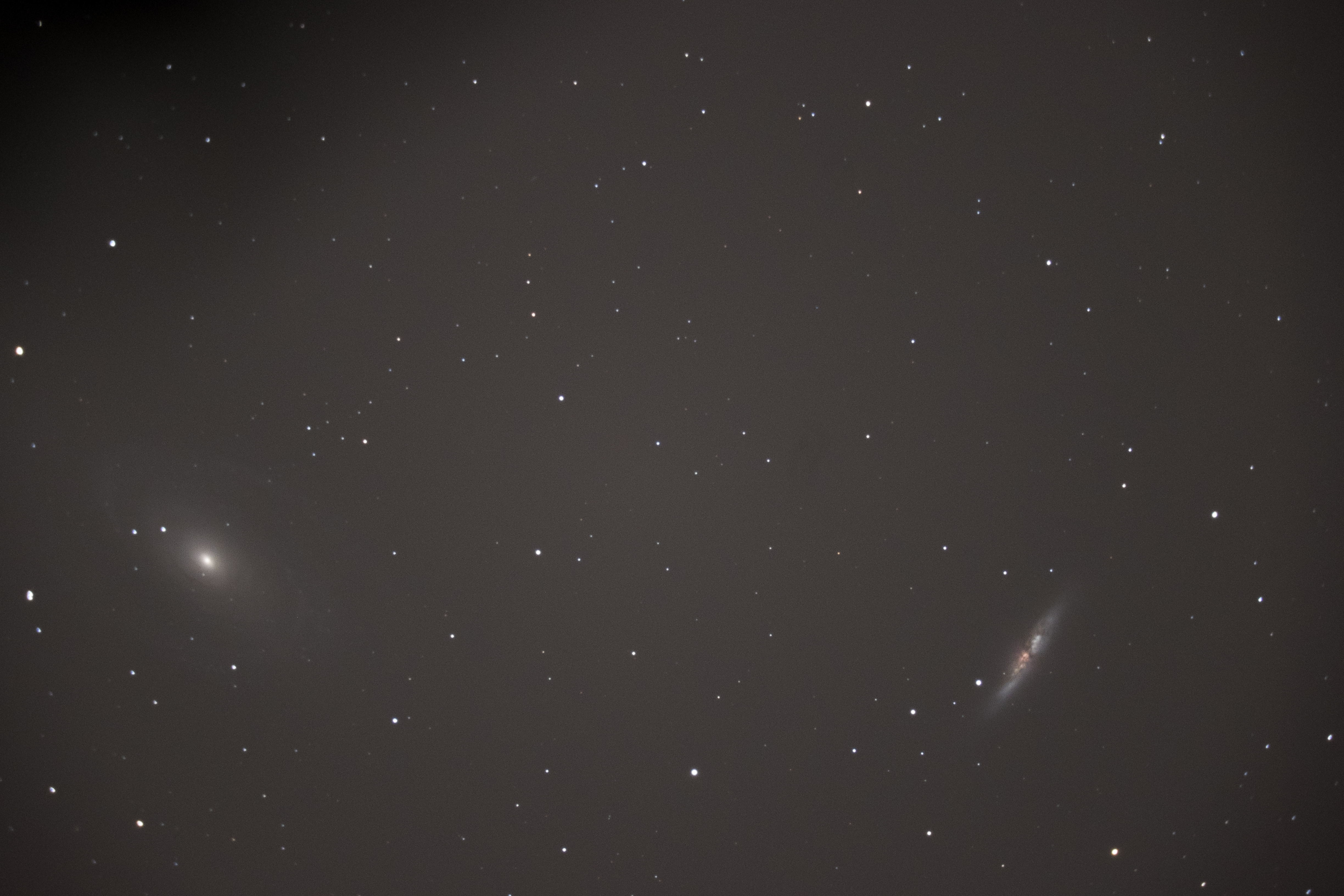 Skillnaden mellan två bilder av M82 på två respektive tre minuter, är väldigt liten, så det verkar som att jag just där och då också fick styr på guidningen.