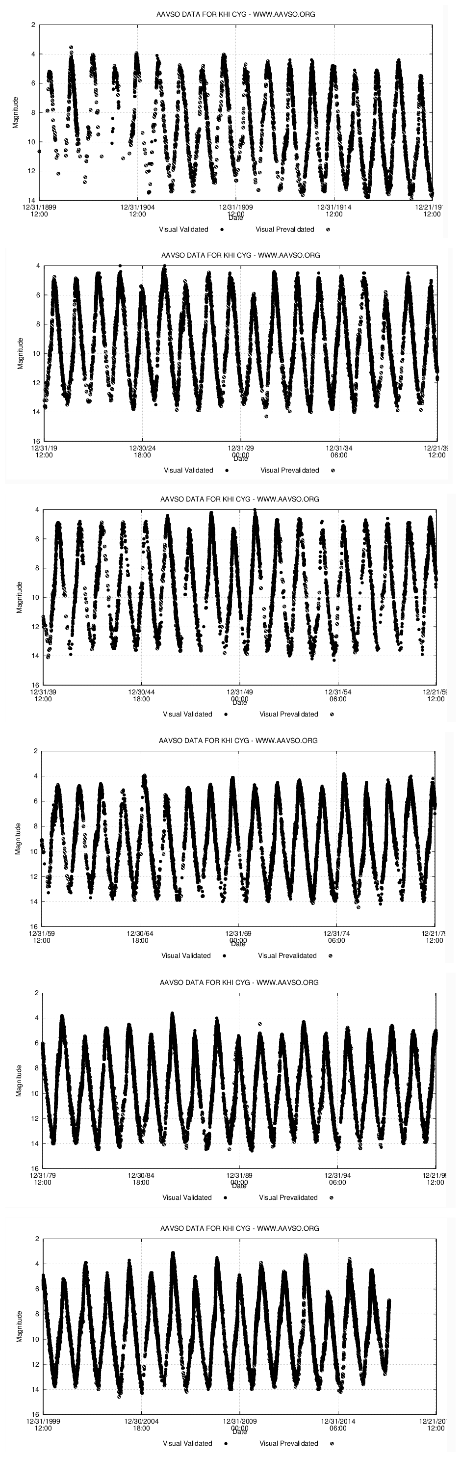 Hej! Första inlägget här! Tycker också att det är intressant att khi Cyg har inte än genomgått den moment i magnitudutvecklingen där takten i vilken magnituden minskar blir relativ långsammare. Om man tittar på ljuskurvan sedan början av 1900 talet, ser man att detta fenomen är relativt ovanligt, men har skett några gånger förr. Det blir spännande att se vad som händer, uppgången är inte än klart!