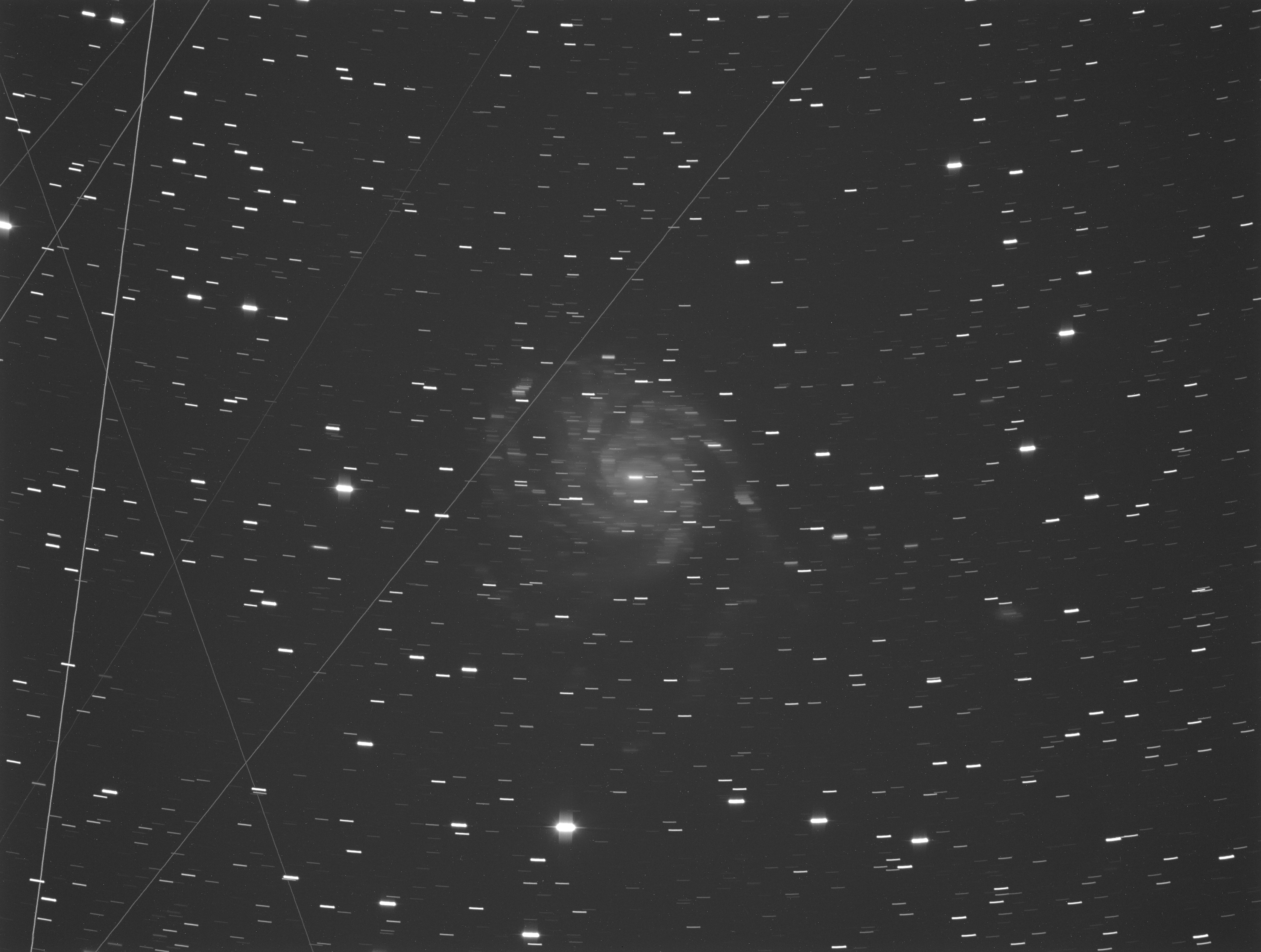 Testade att stacka ett gäng av LUM bilderna från min senaste bild, utan att aligna för att se eventuellt tracking, guiding error.