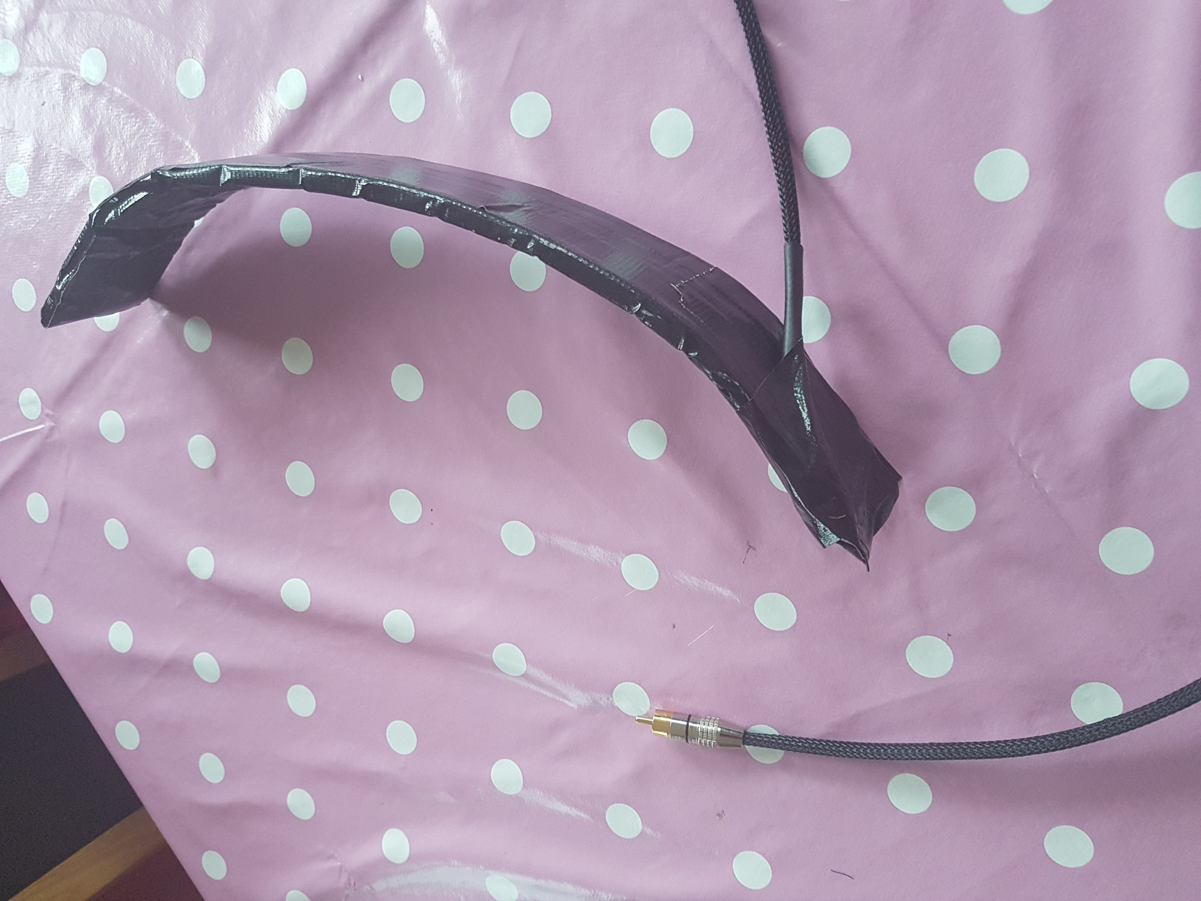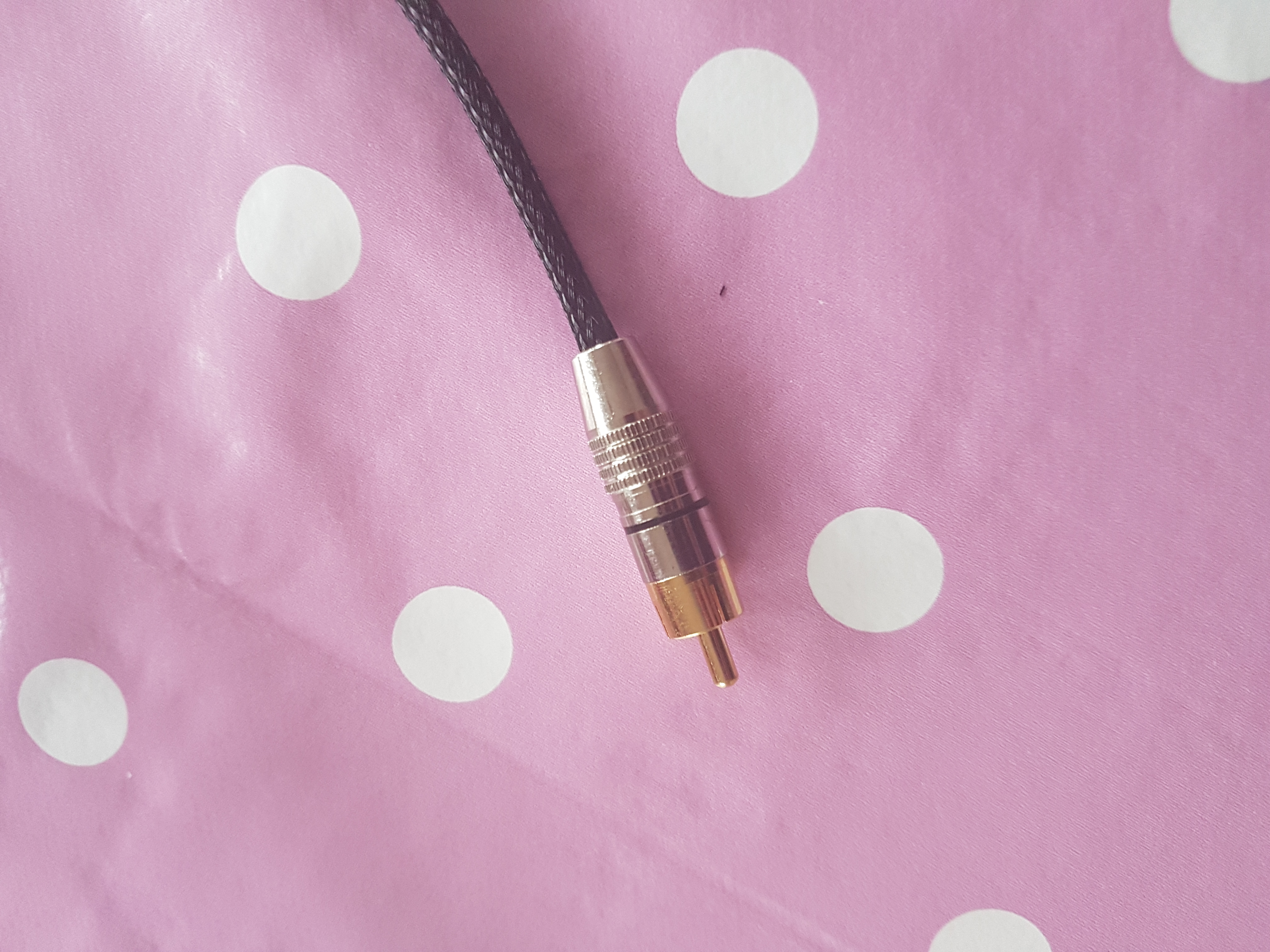 Sen var det bara att trä på nylonstrumpan och löda fast rca kontakten så var den klar.