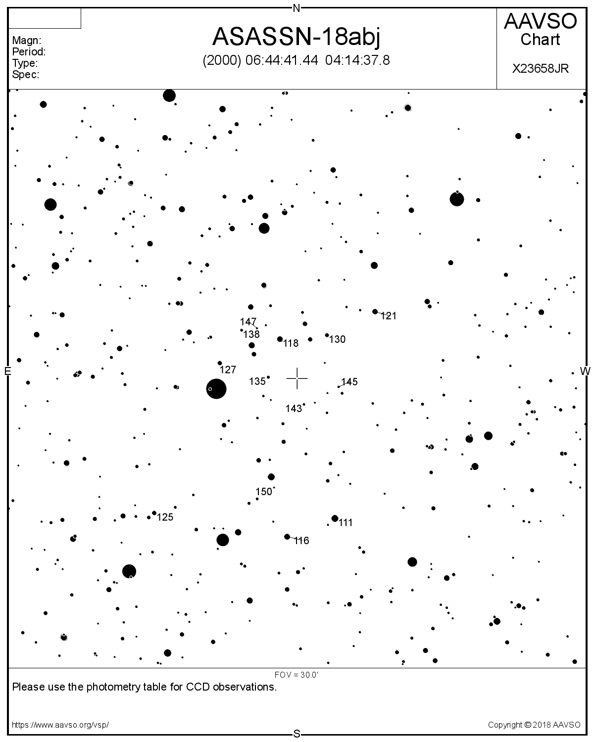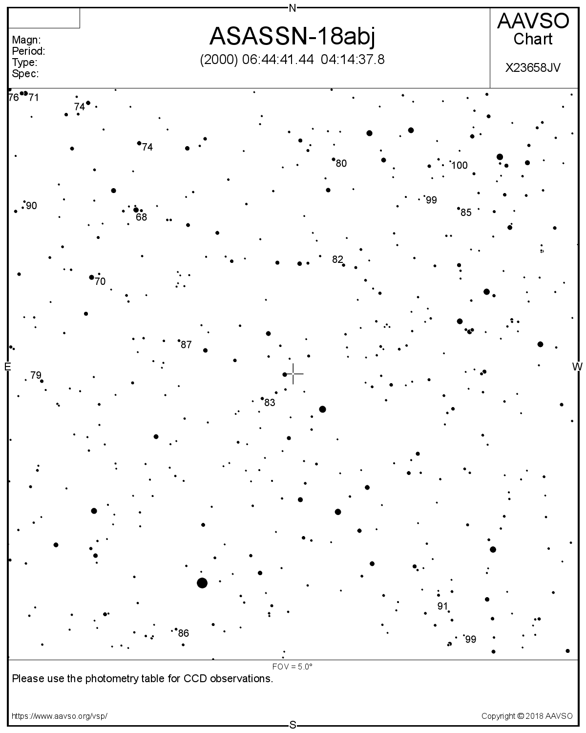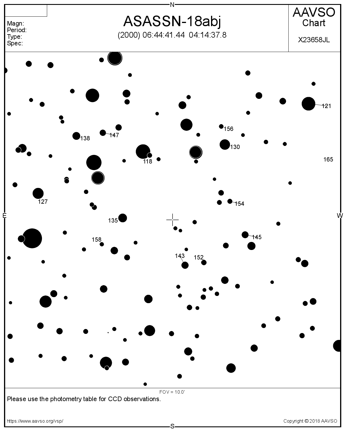 Det finns nu en magnitudsekvens för detta eruptiva objekt, ASASSN-18abj, se nedan.